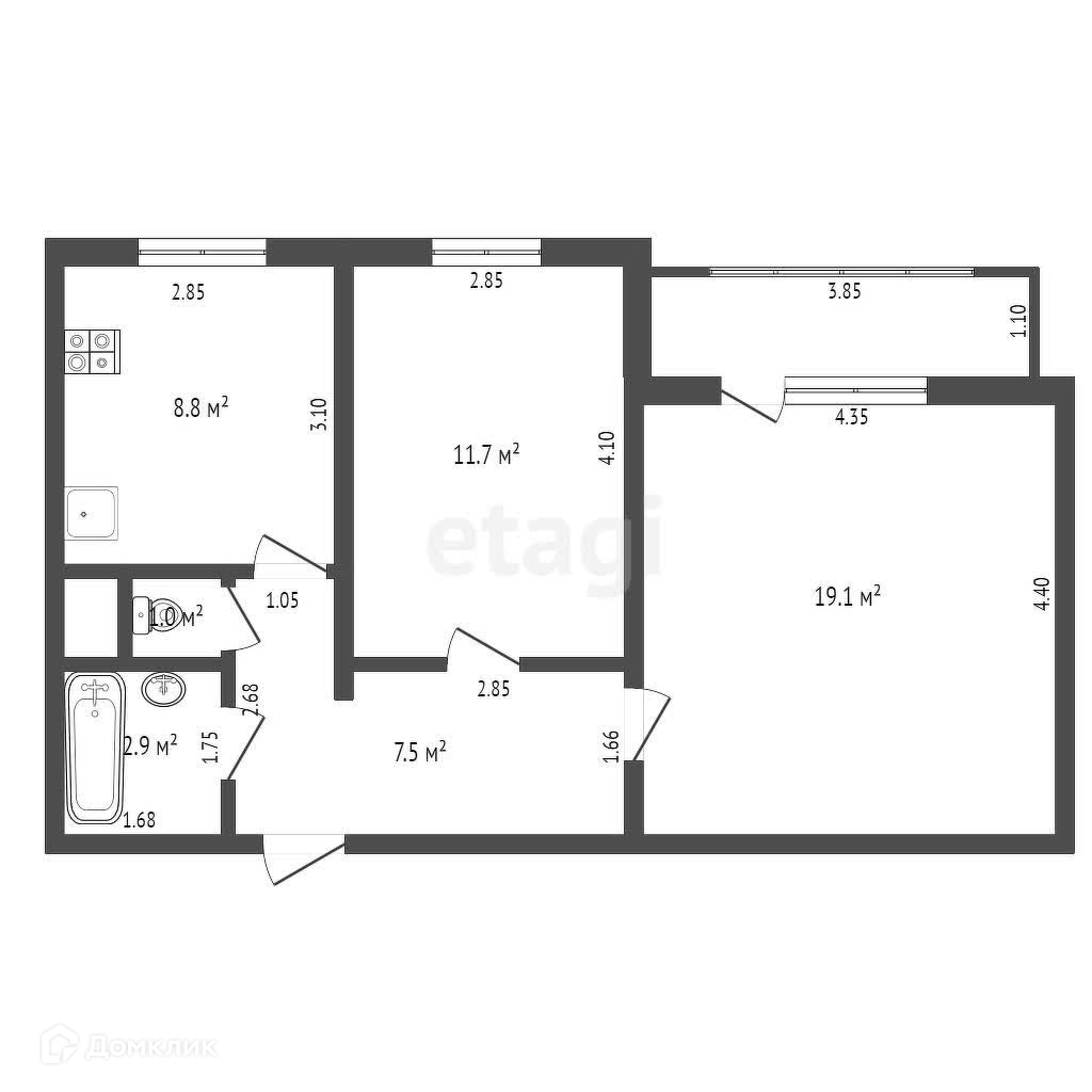 Вторая комната 11,7 кв. м., лоджия 3 кв.м.; кухня 8,8 кв. м. Сан. узел раздельный.