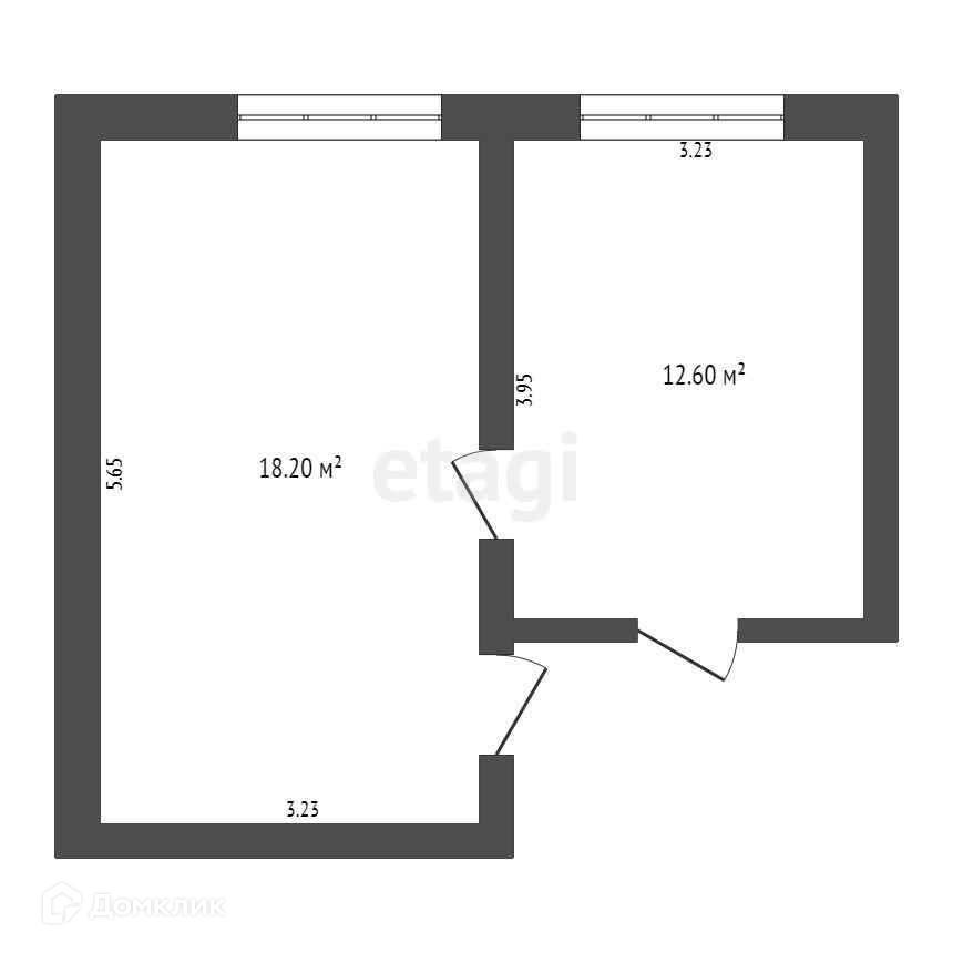 Общая площадь 44.3 м2