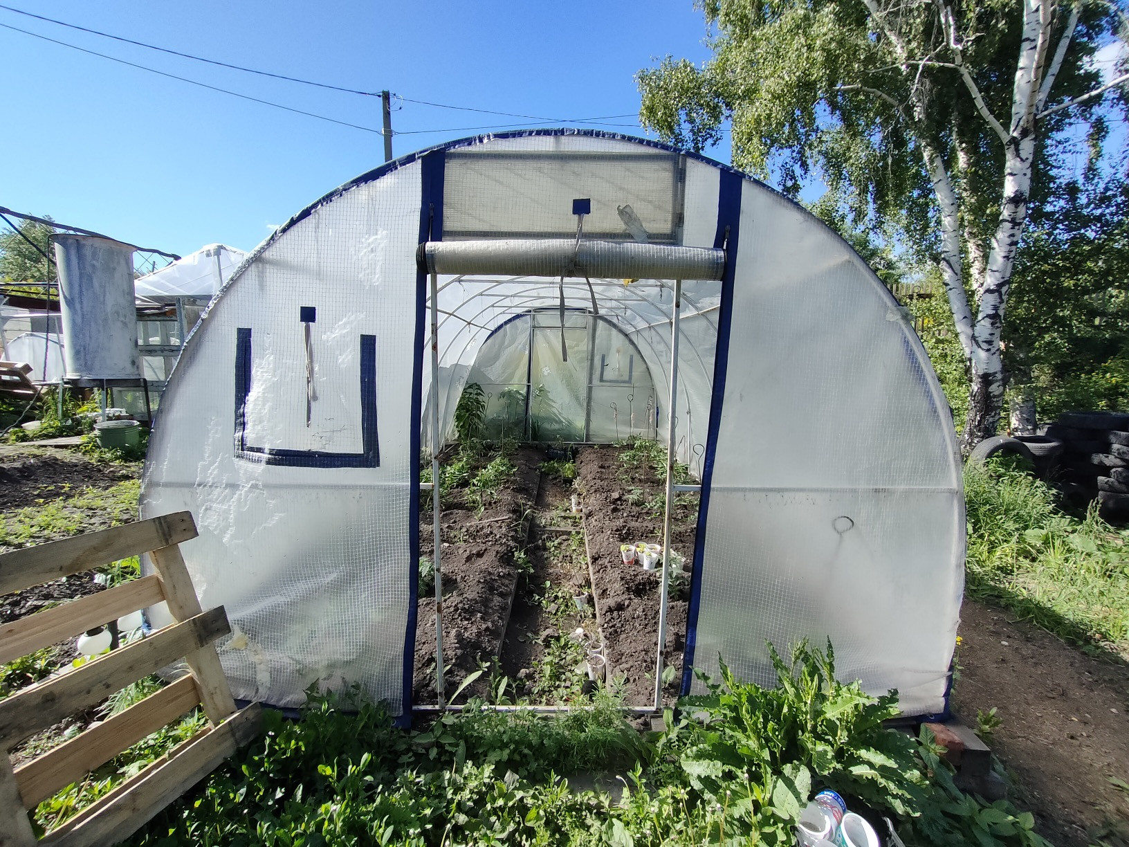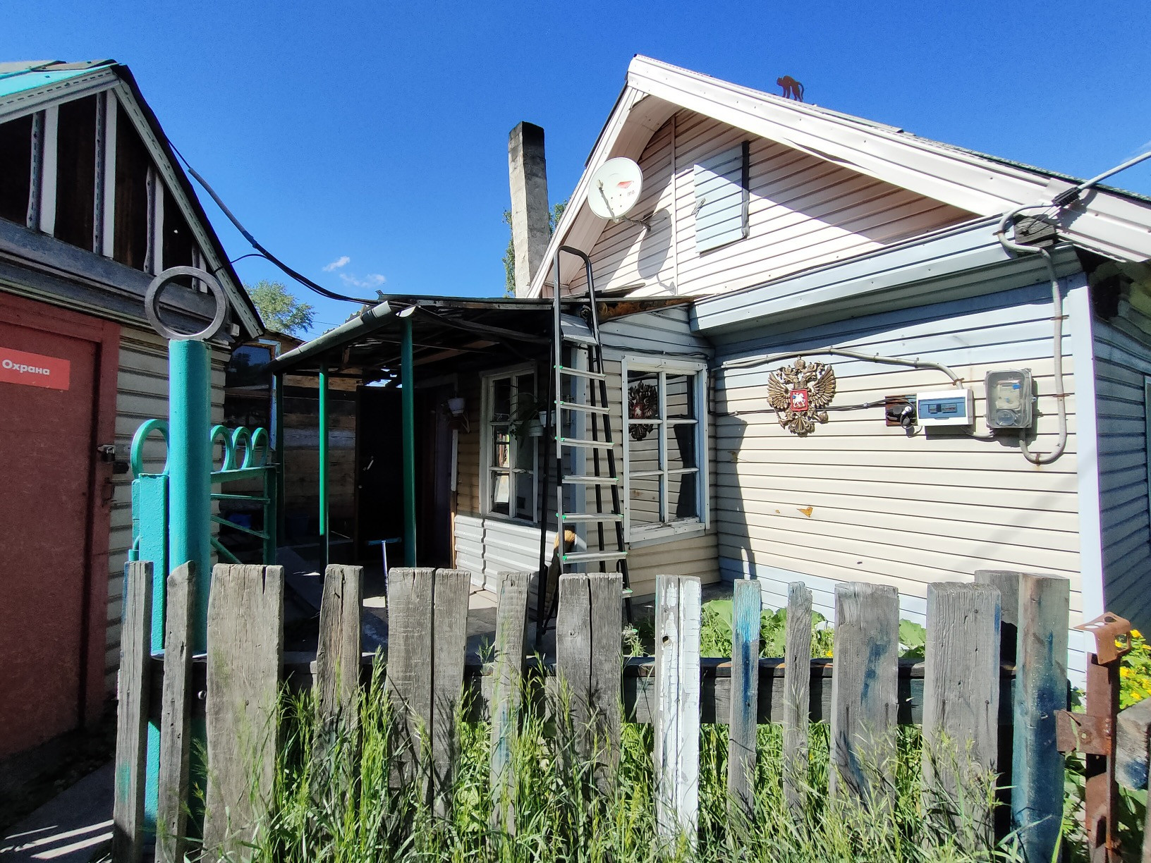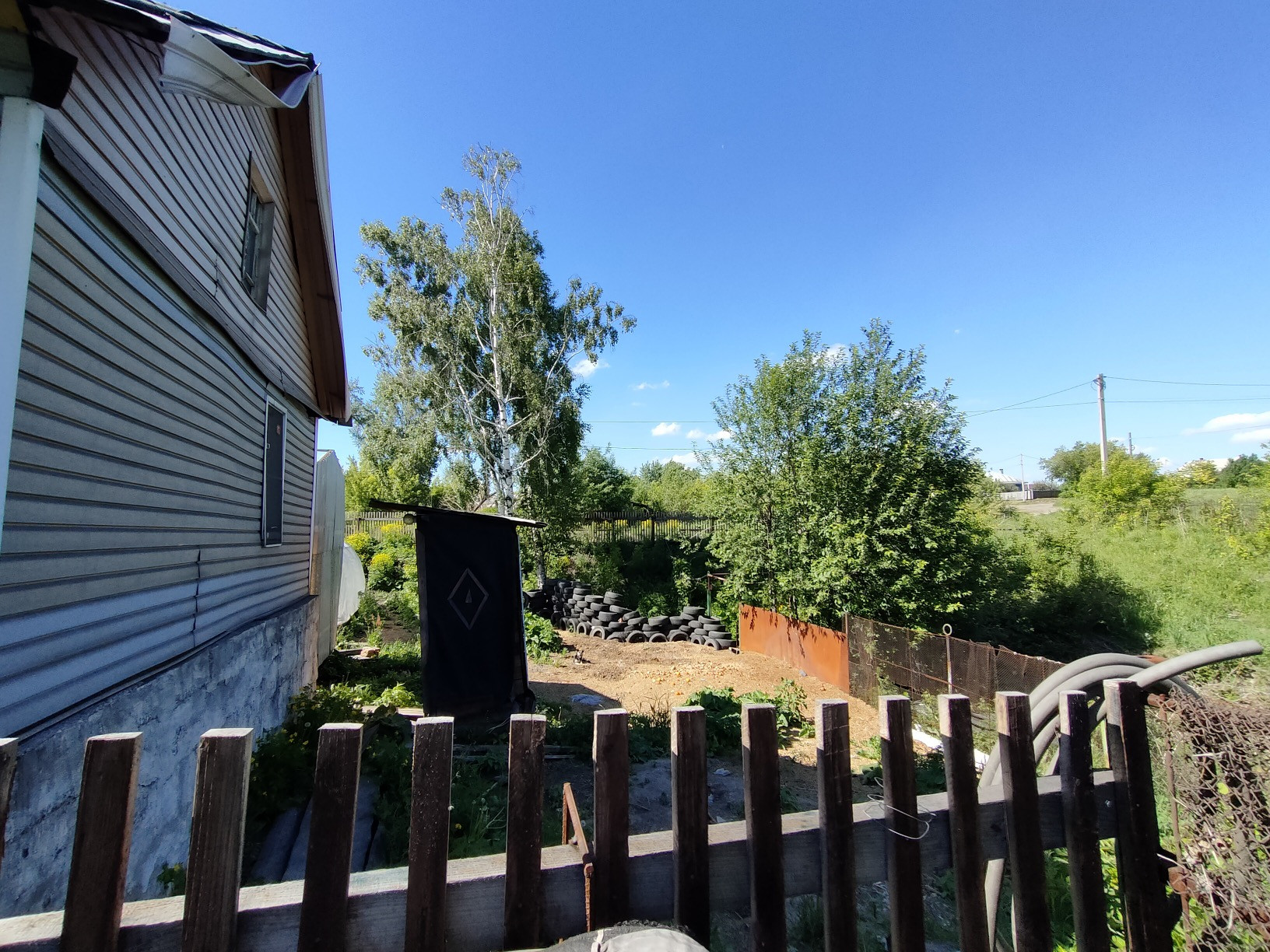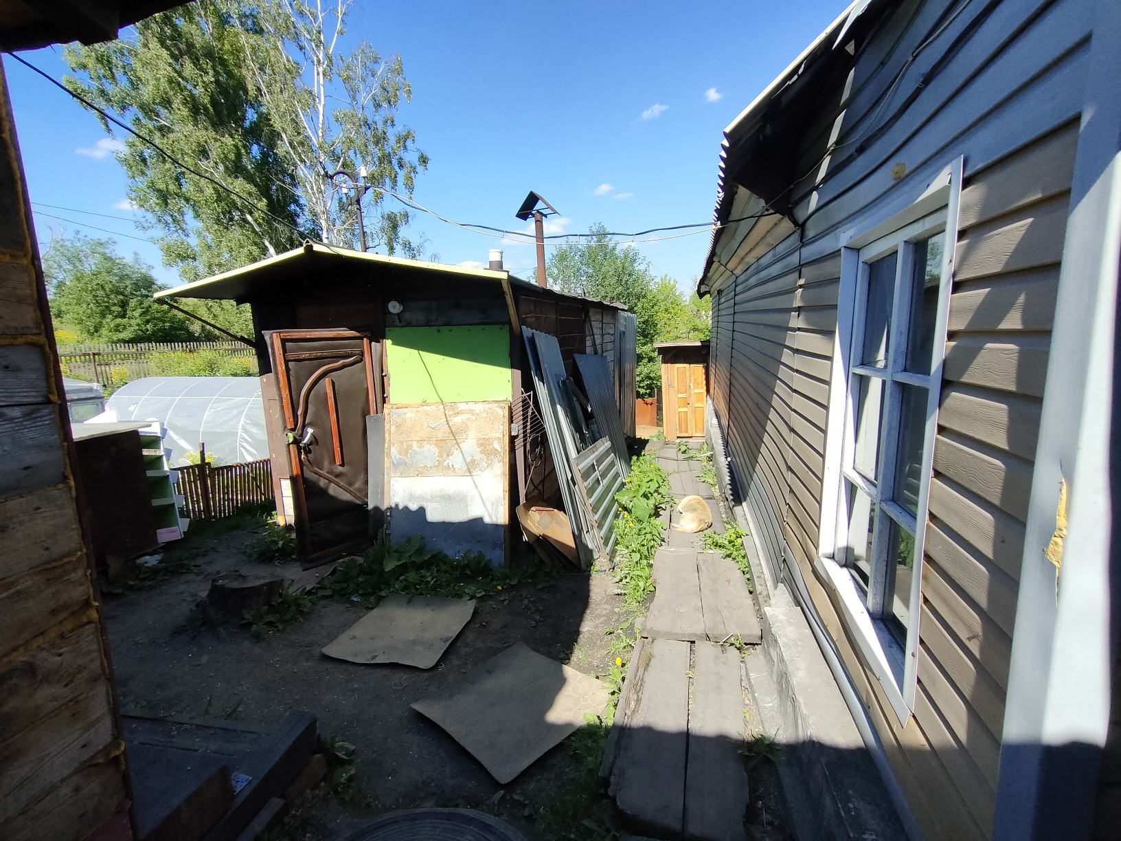 Летняя кухня, углярка, хоз.блок для инструментов, уличный туалет, железный гараж и большой недостроенный.