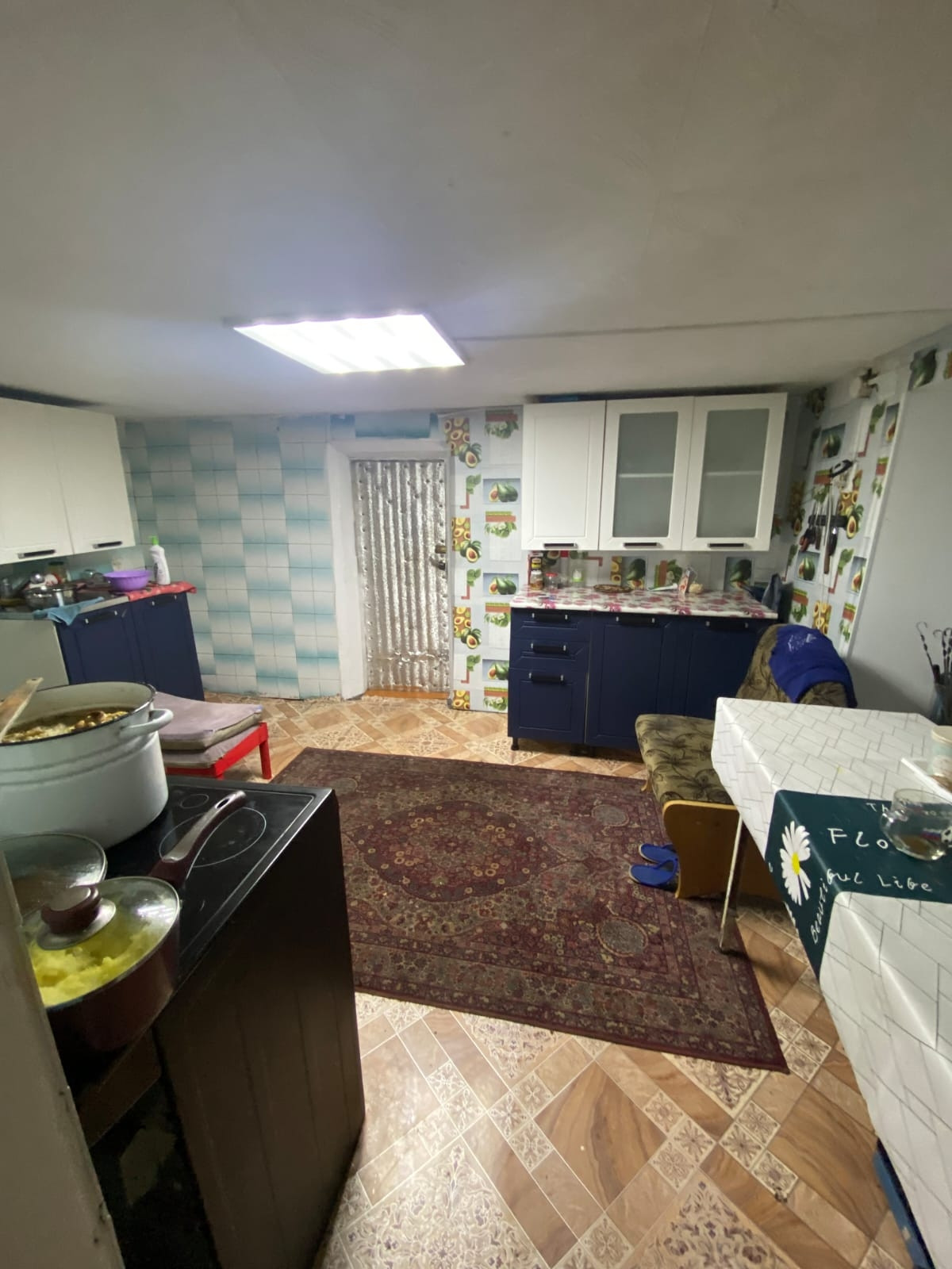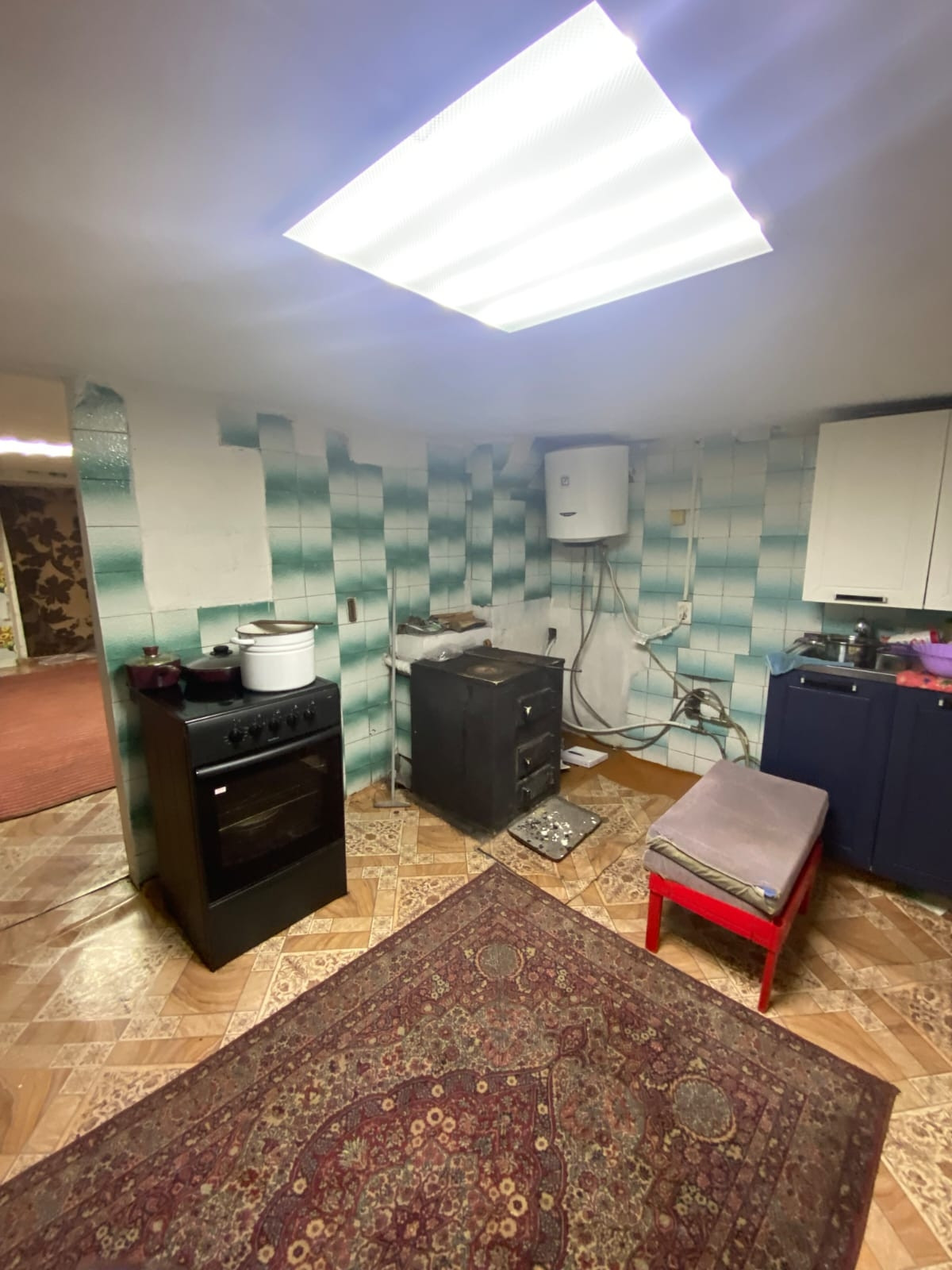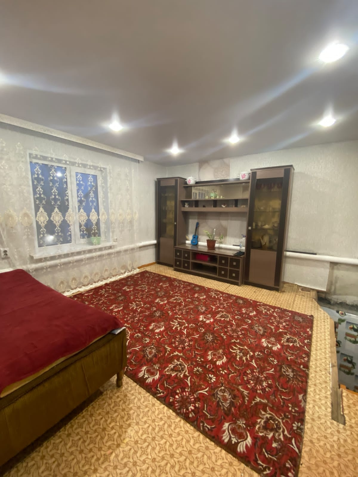 1 этаж : кухня , большая гостиная, санузел .