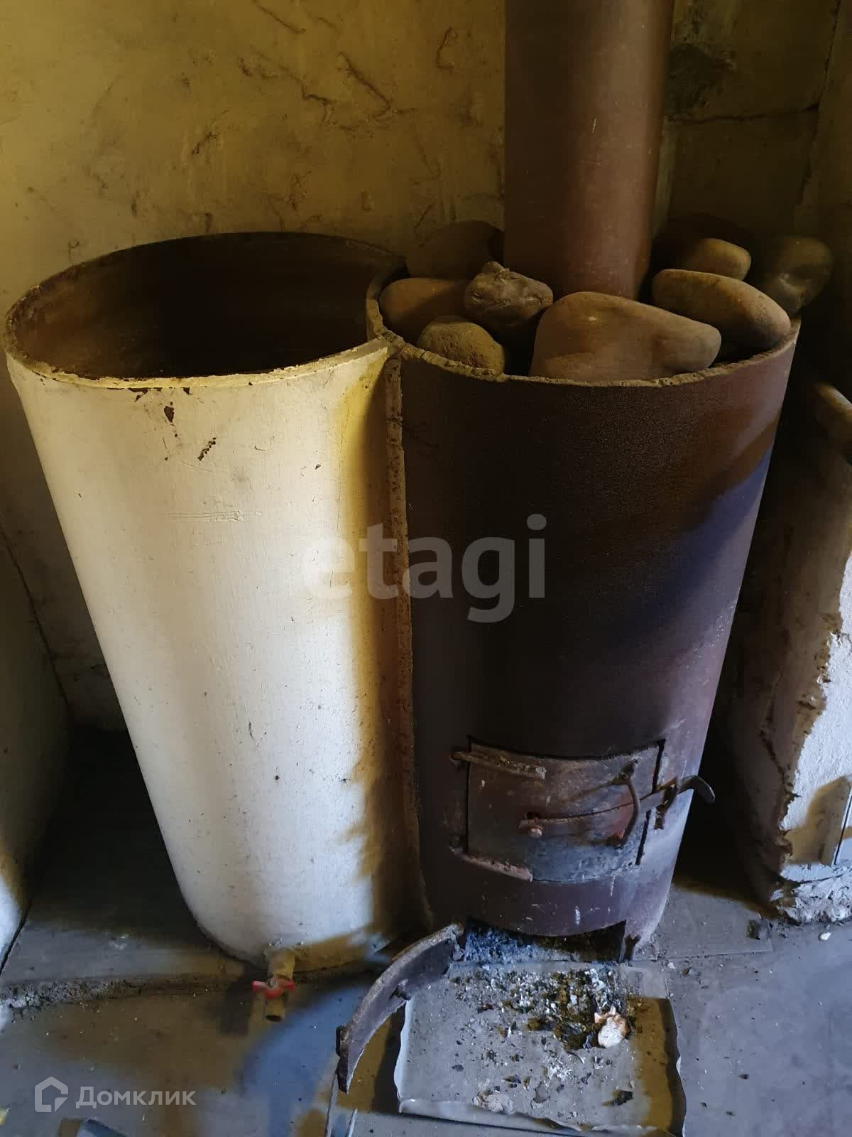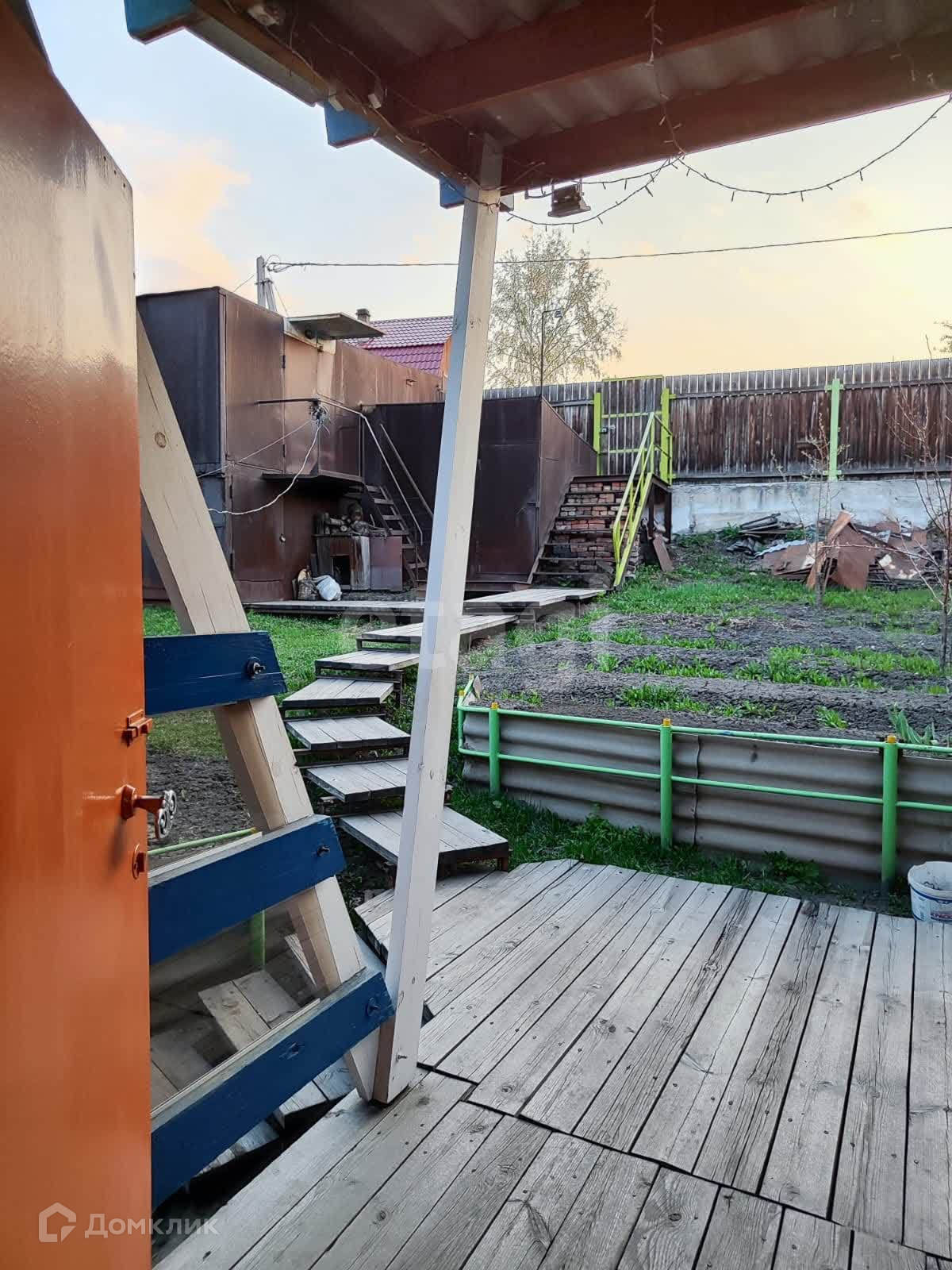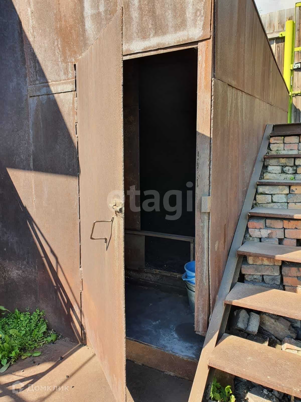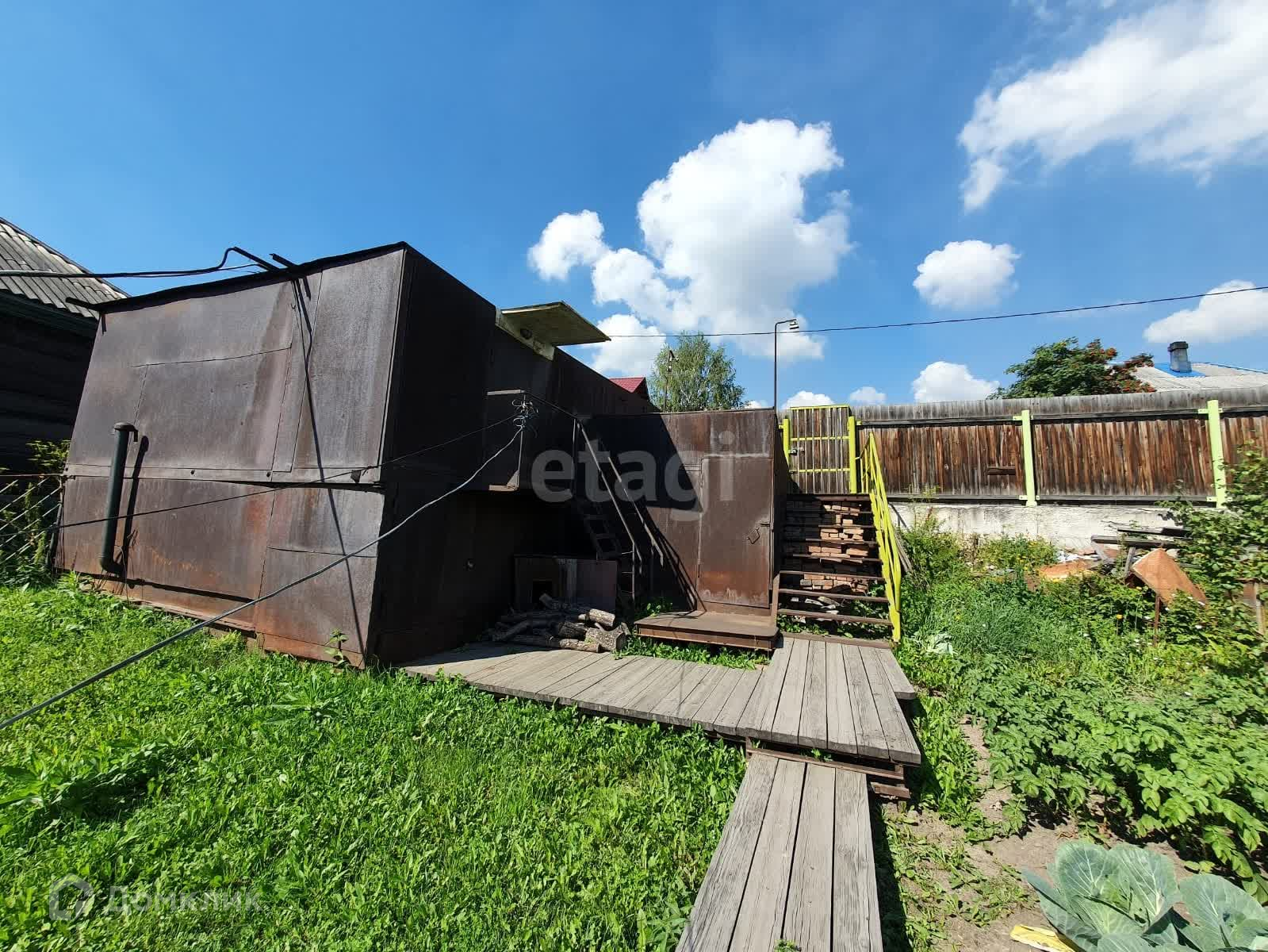 На территории установлен большой металлический гараж под два легковых автомобиля, входит Лзнд крузер. Углярка из металла на 15 тонн. Баня с летней кухней под одной крышей. Баня жаркая, нагревается быстро, есть предбанник. В летней кухне выложена печь из кирпича.