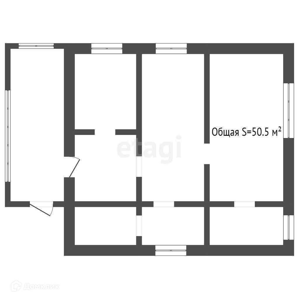 Общая площадь 50.5 м2