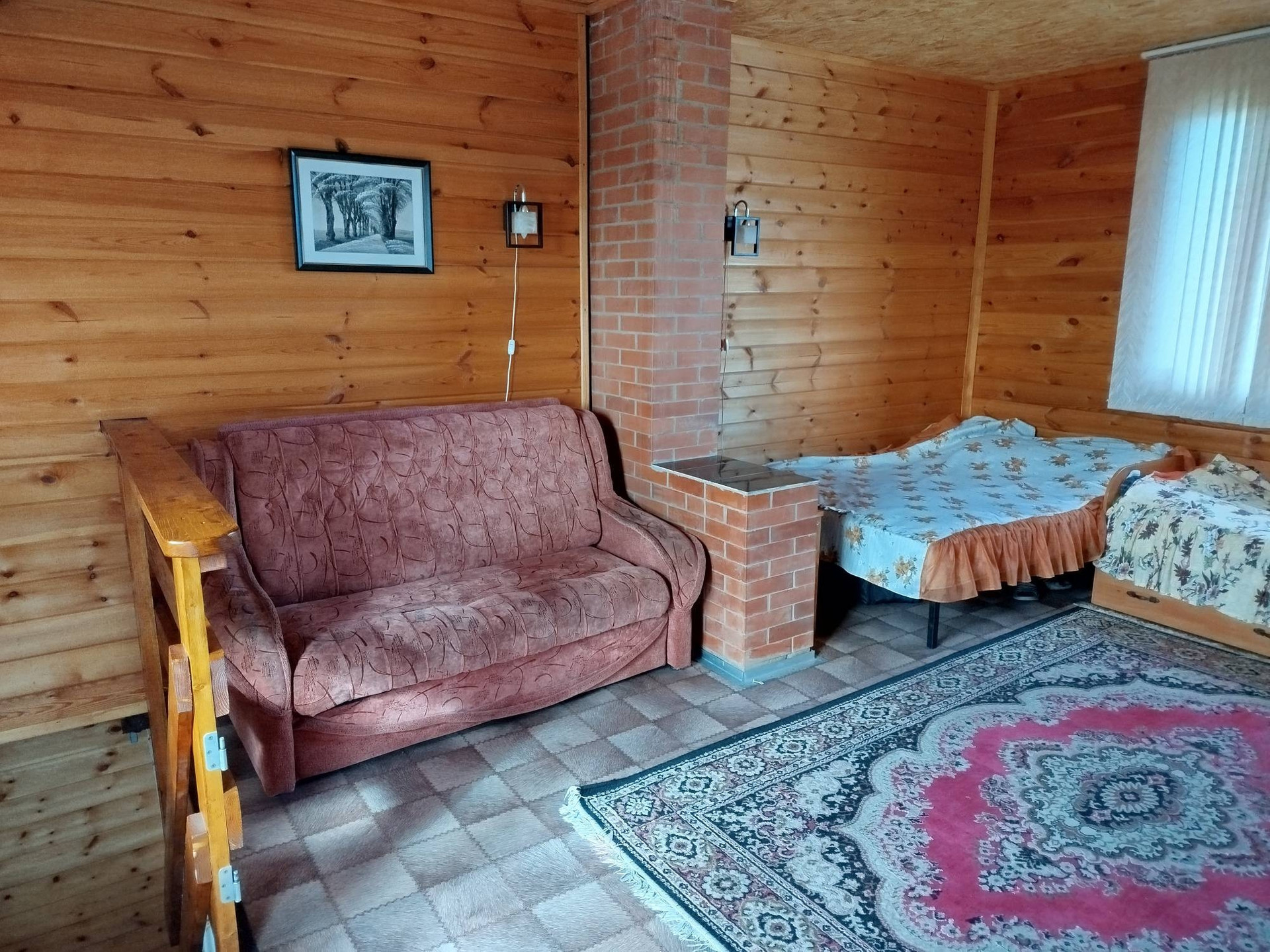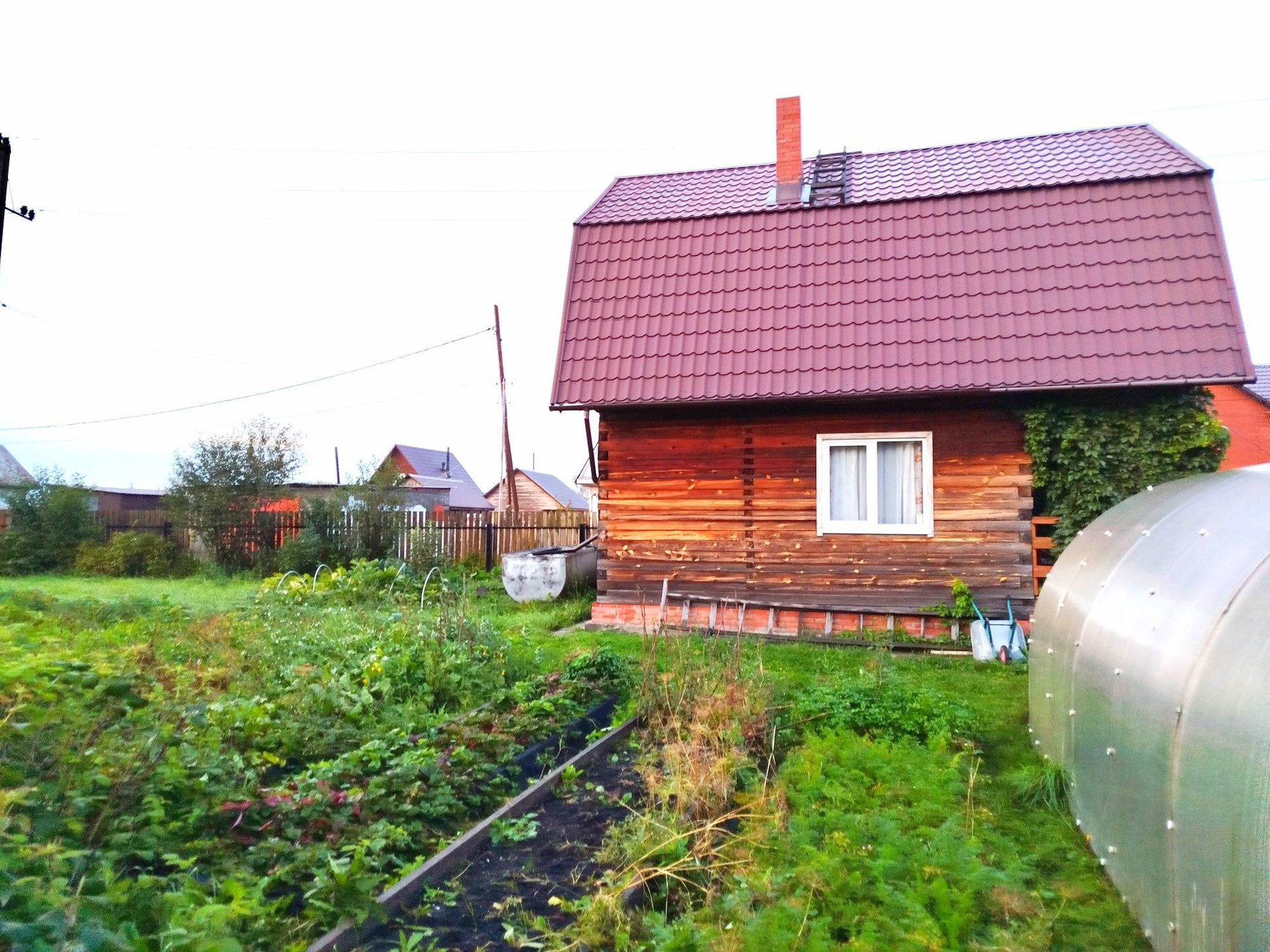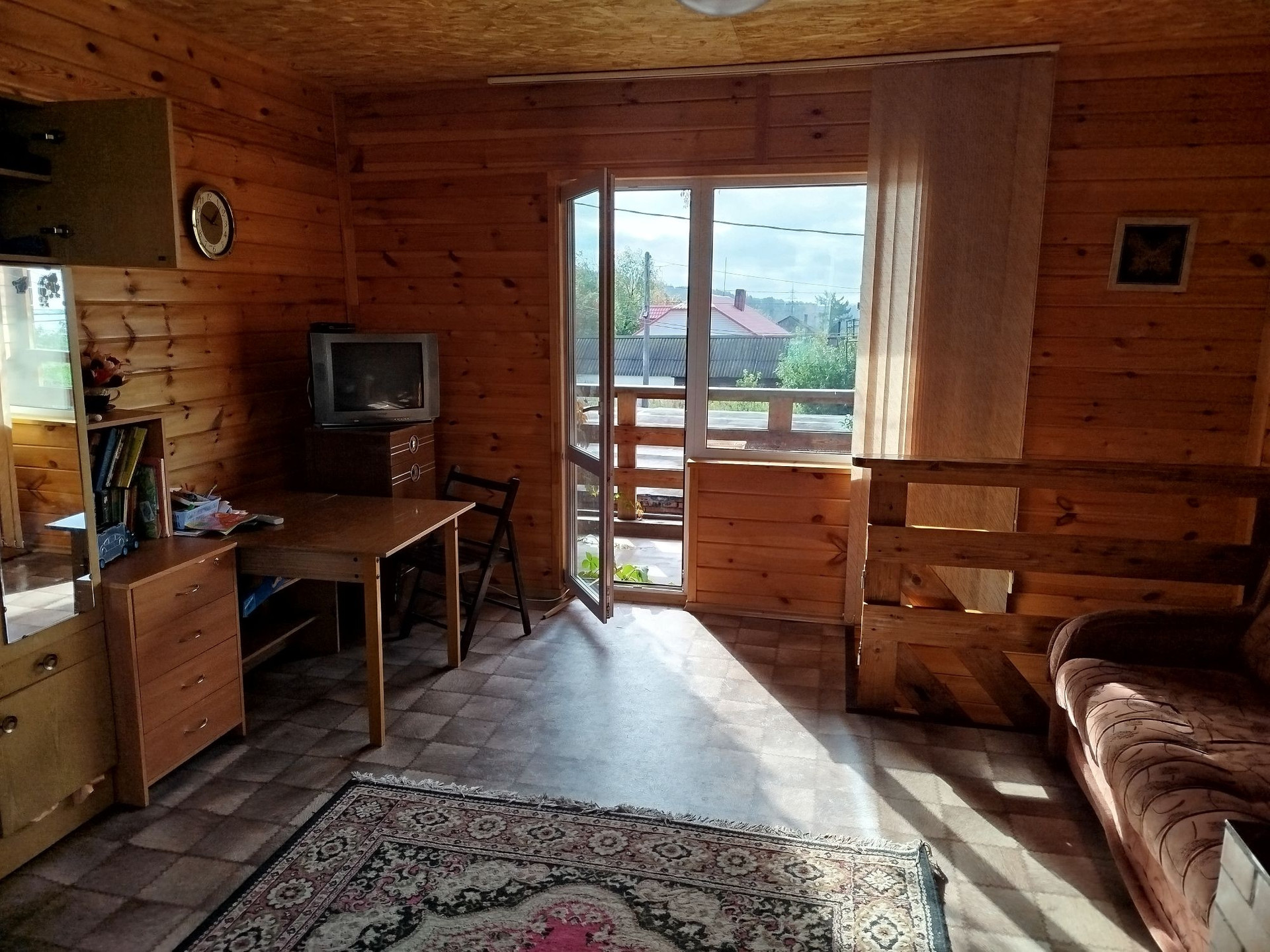 Уютный дом из бруса с сауной и терассой.Недалеко от остановки автобуса. Есть все посадки.Большой гараж с погребом.