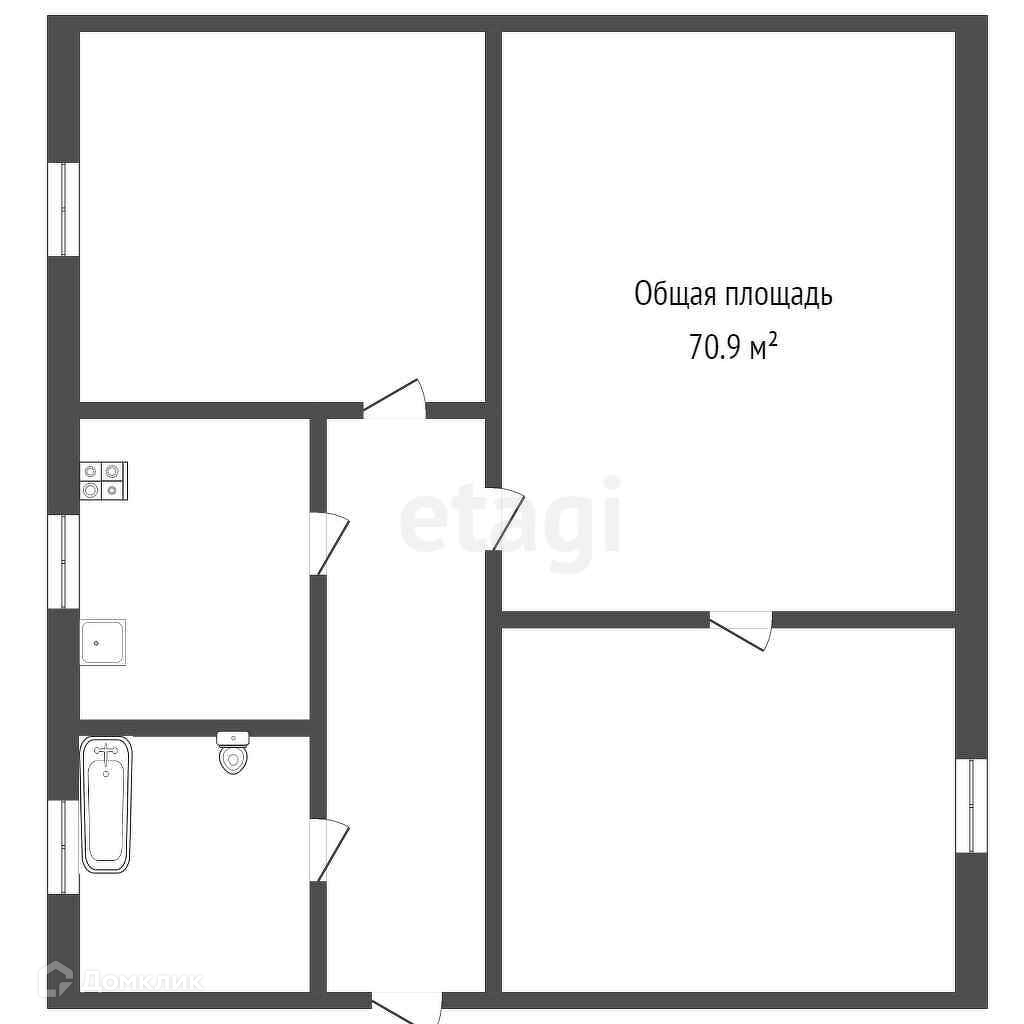 Общая площадь 70.9 м2