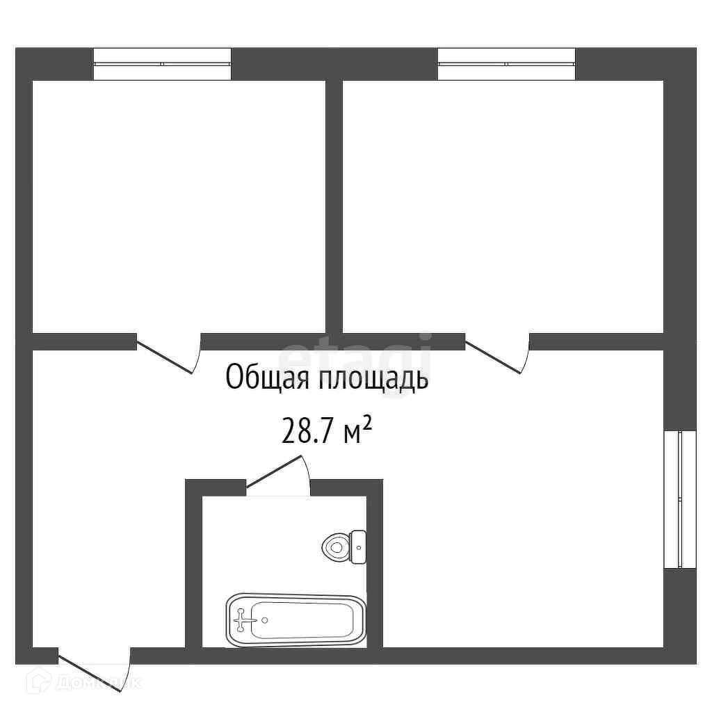 Общая площадь 28.7 м2