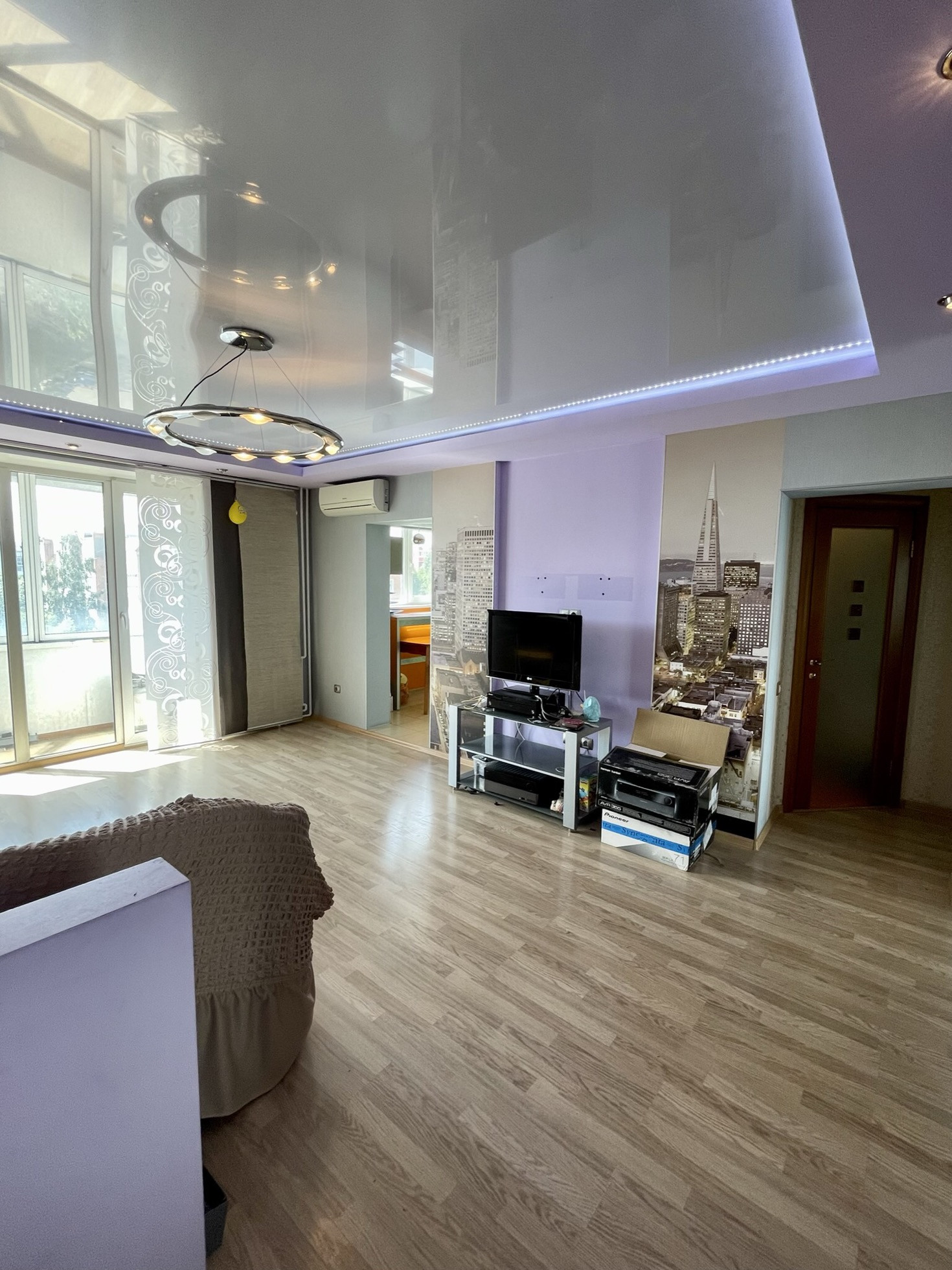 Была официальная перепланировка гостиной и уборной, поэтому квартира получилась просторная и уютная.