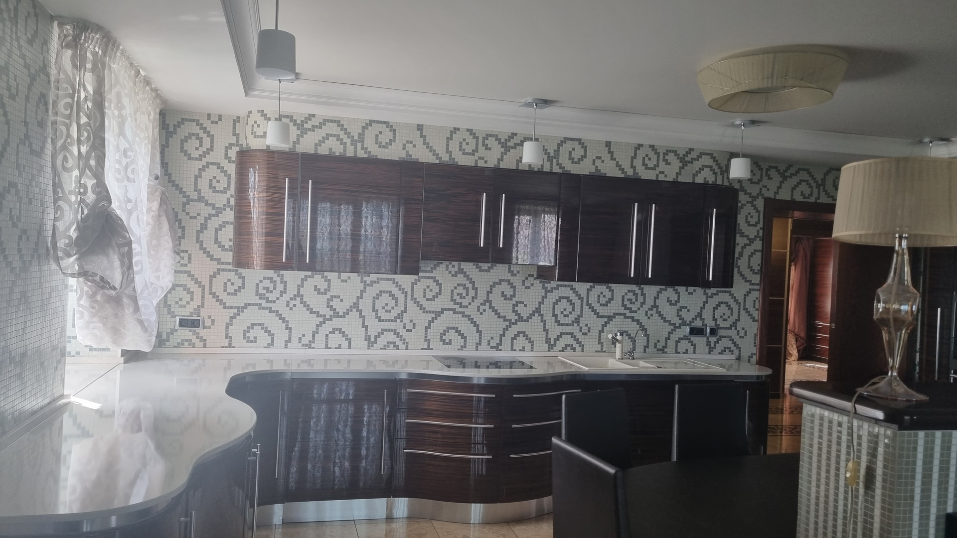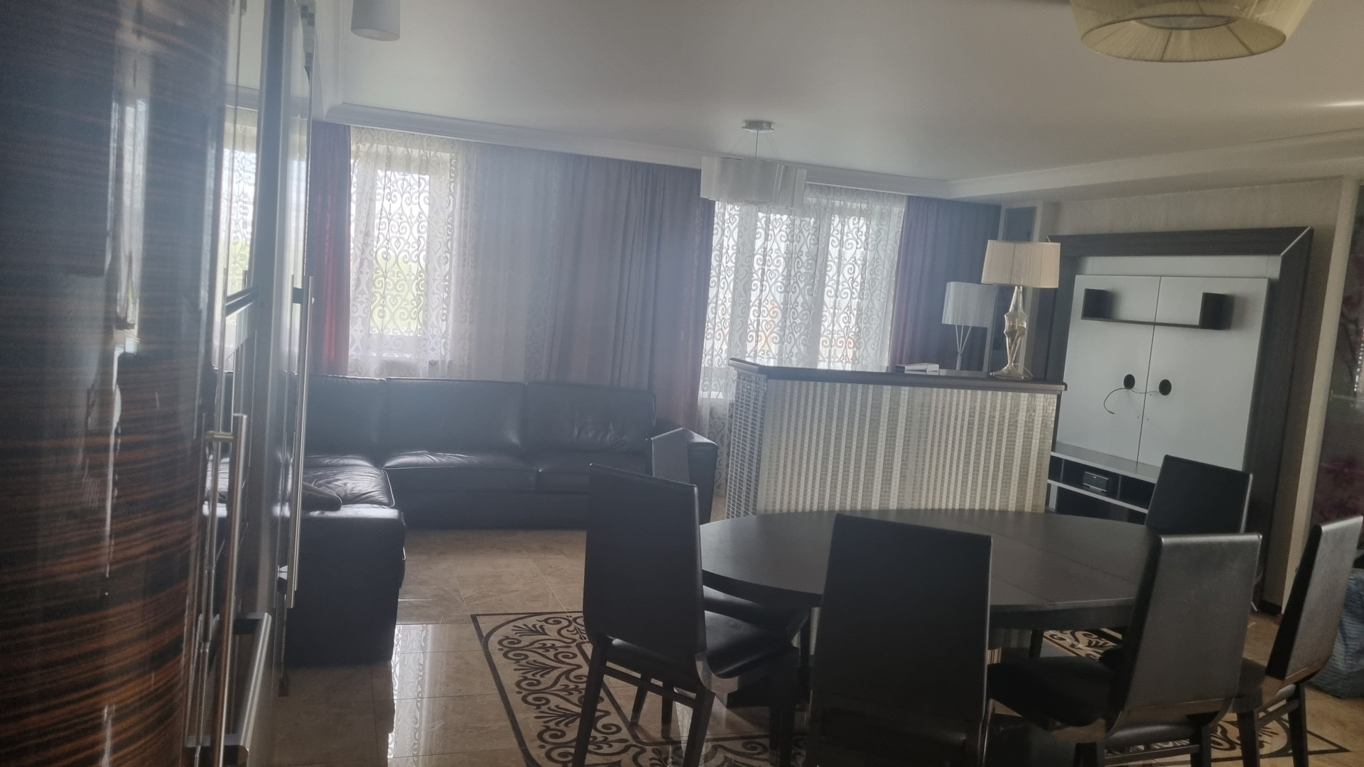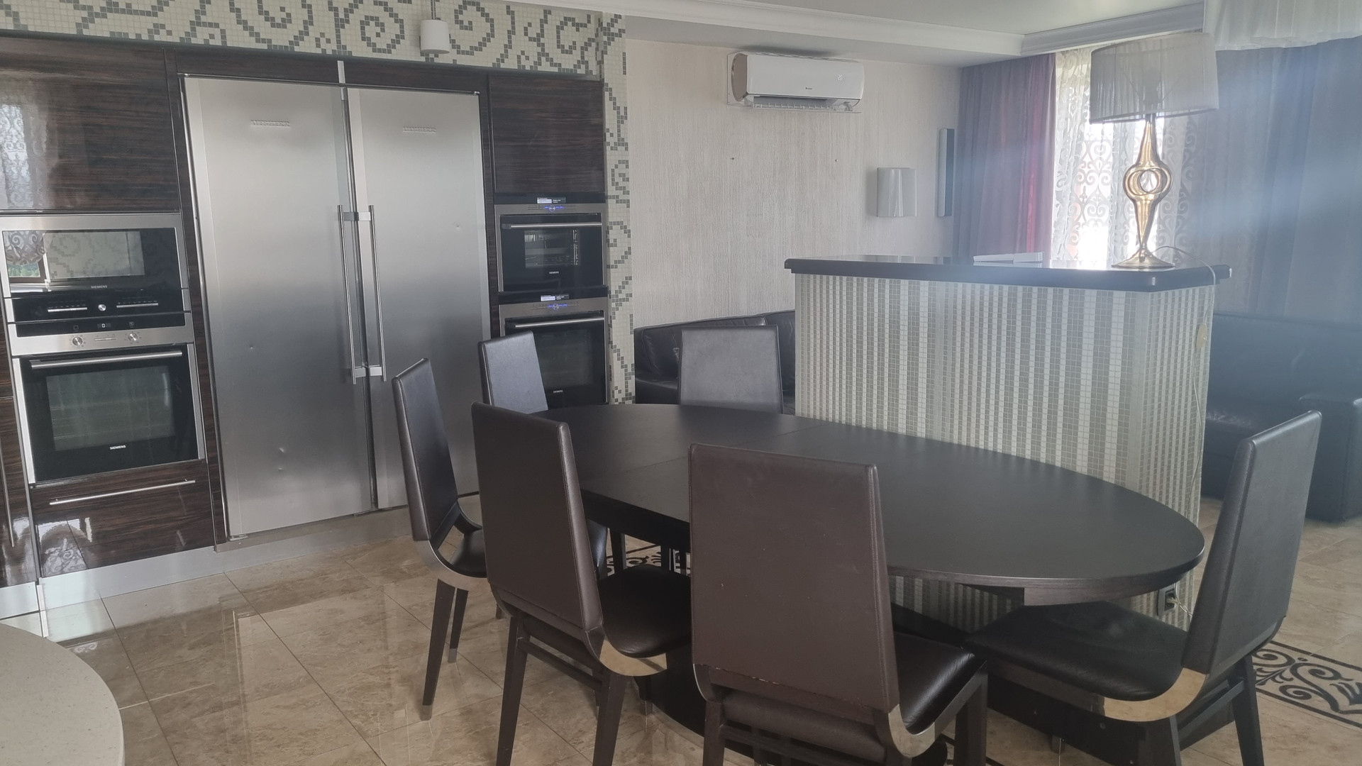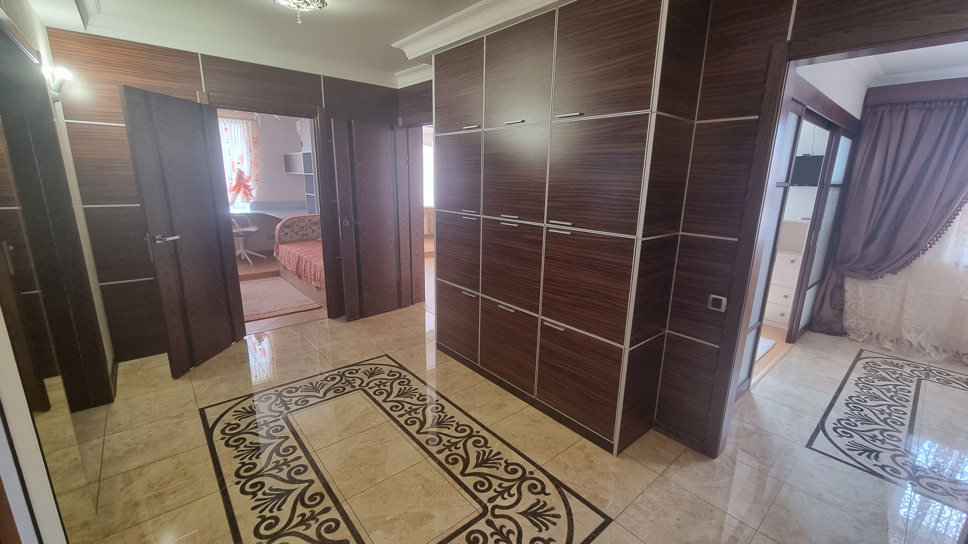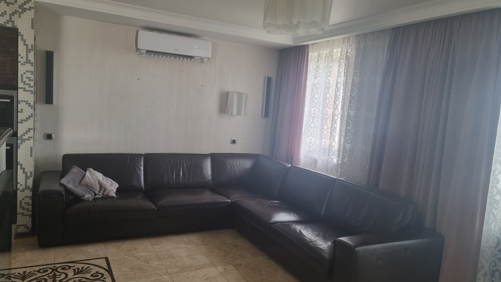 Отличная пятикомная квартира в кирпичном доме. Дизайнерский ремонт. Стеклопакеты. Потолки натяжные. Пять кондиционеров. Пол в комнатах: паркетная доска, коридор и гостинная керамогранит с подогревом. Итальянский кухонный гарнитур со встроенной техникой (два духовых шкафа, паровой шкаф, микроволновка, варочная панель, посудомойка, холодильник, фильтр для воды). Итальянские  обеденная группа, TV зона, кожаный угловой диван. Встроенная мебель Mr. Doors. Встроенный электрокамин.  Два санузла. Ванная комната: водонагреватель, ванная с гидромассажем,  душевая кабина с паром. Большая гардеробная. Три больших балкона застекленные стеклопакетами. Хорошие соседи. Крыша капитальный ремонт. Видеонаблюдение на этаже. Во дворе 14 школа.
