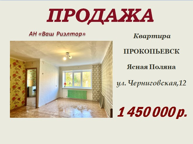 1-комнатная квартира, 30 м2, этаж 1 / 3, на продажу в Прокопьевске, Черниговская улица, 12