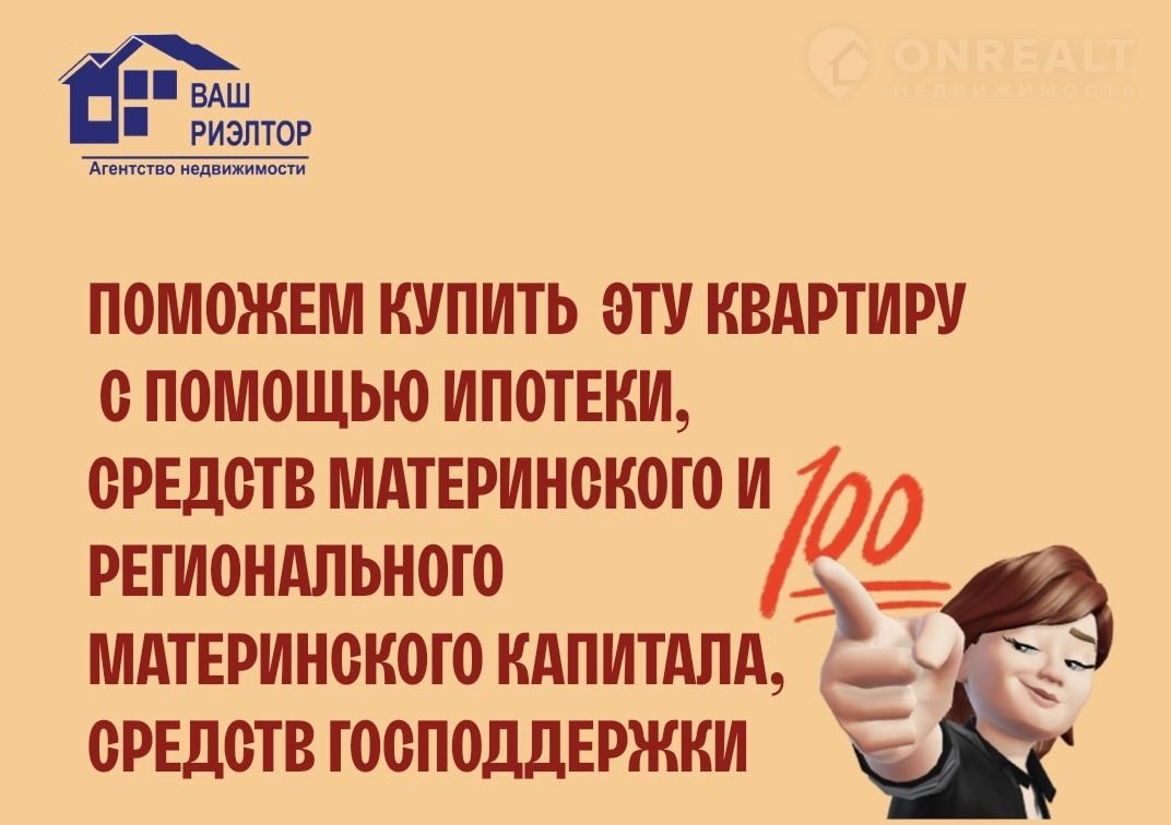 Квартира подходит под покупку в Ипотеку, под материнский и региональный материнский капитал, гос. поддержку многодетным семьям ( 450 000р.)