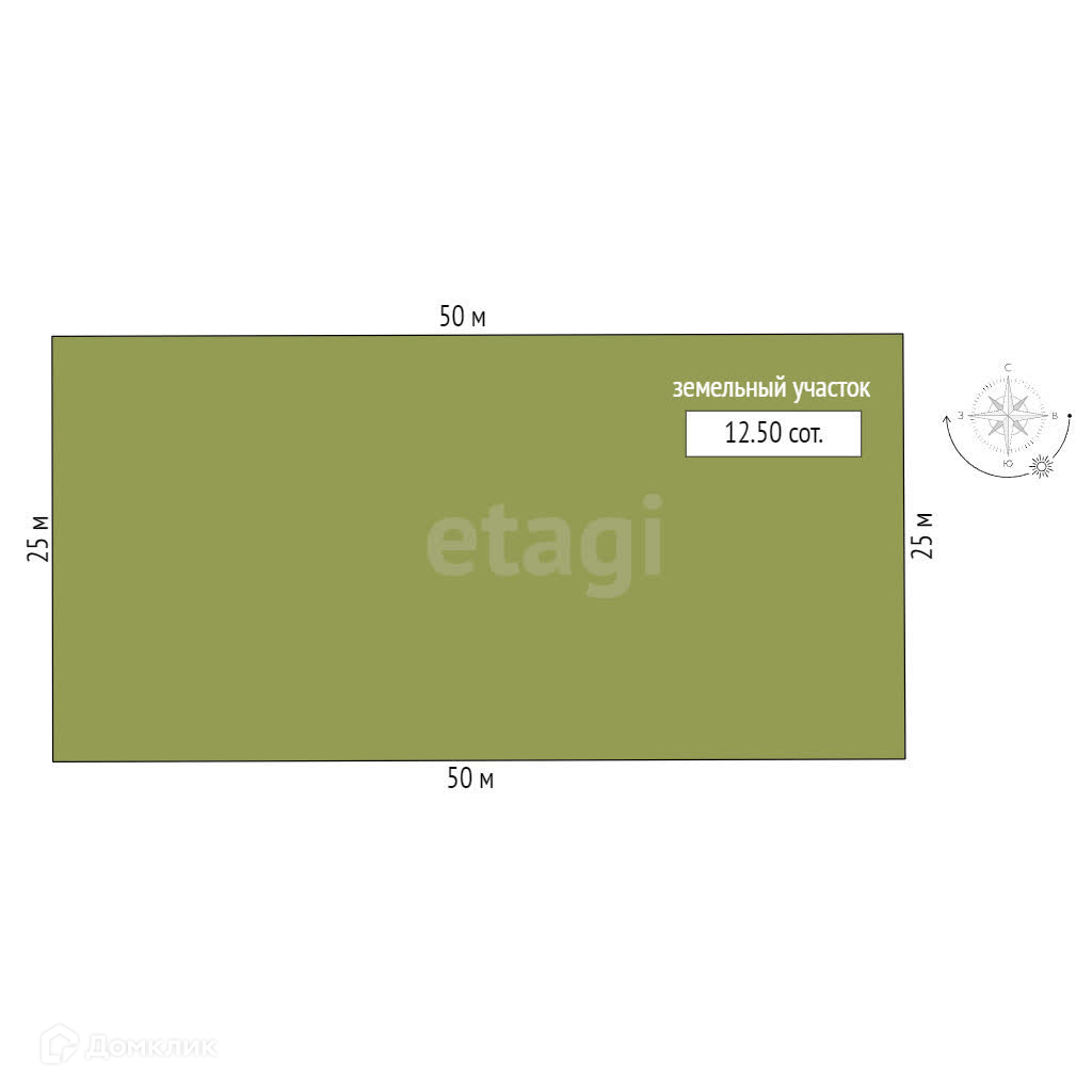 Площадь участка 12.5 сот.