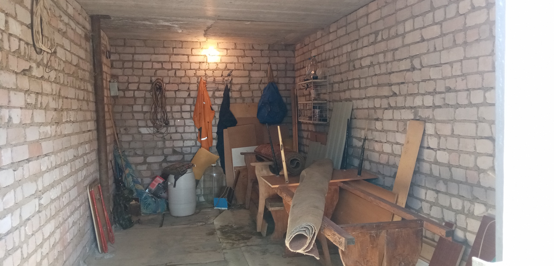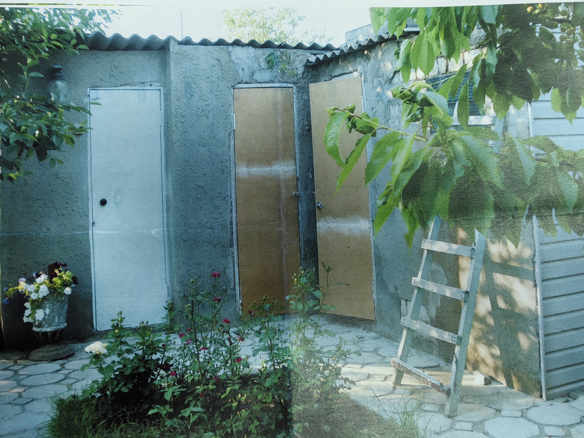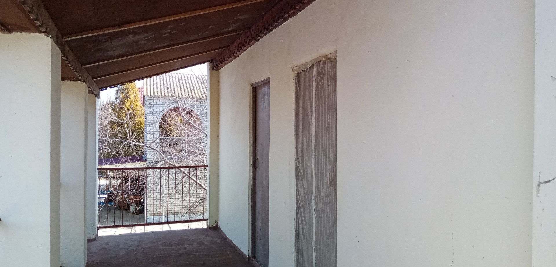 1й этаж- комната 18м2, кухня 13 м2, гараж 18 м2, перед входом в дом - беседка, обвита виноградом -21м2.
