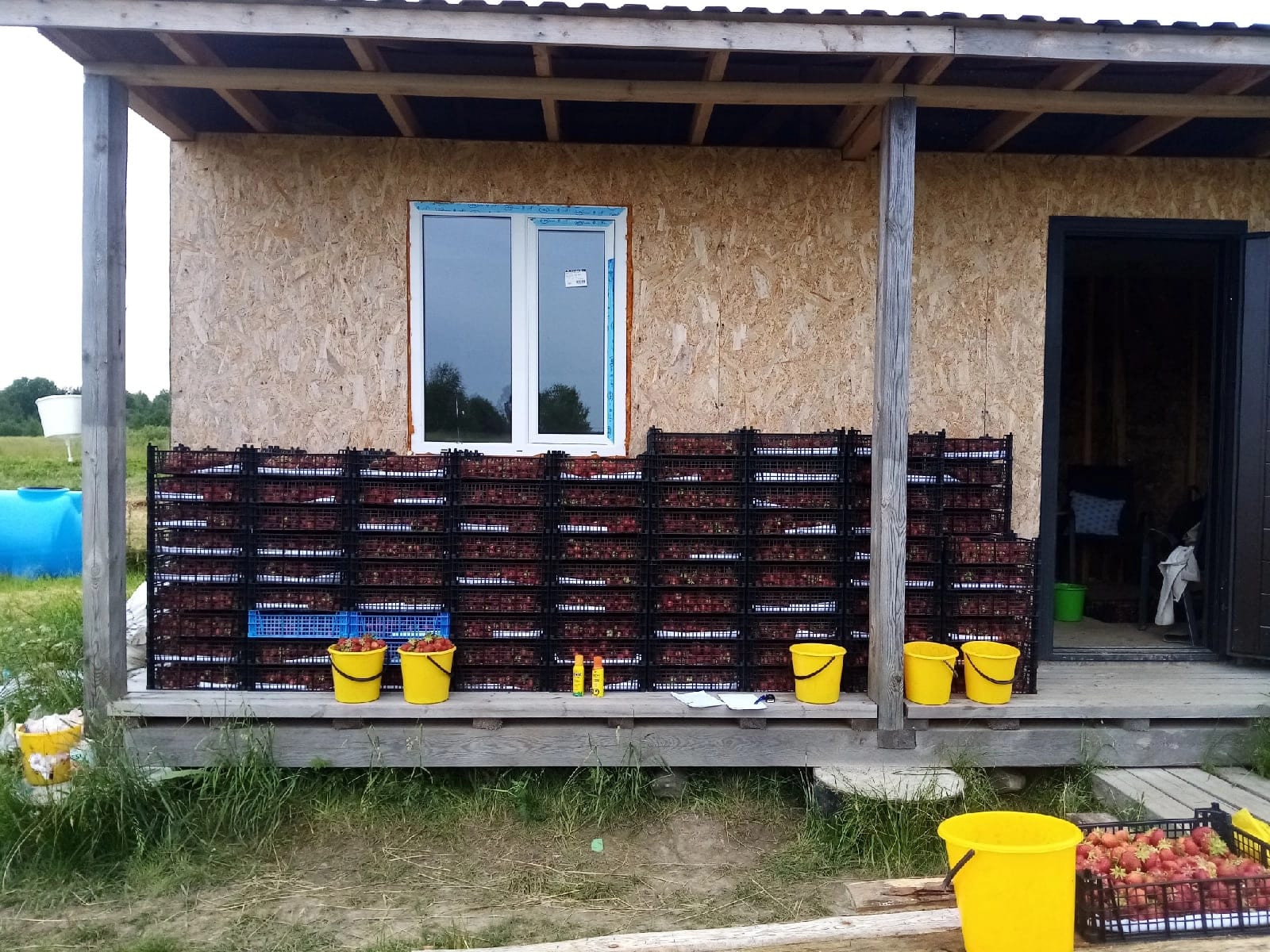 Приобретался для ведения сельххоздеятельности. Выращивалась клубника. На данный момент имеется 1 гектар свежих посадок, сарай, кунг для хранения инвентаря, проведено электричество. Понижающий трансформатор.