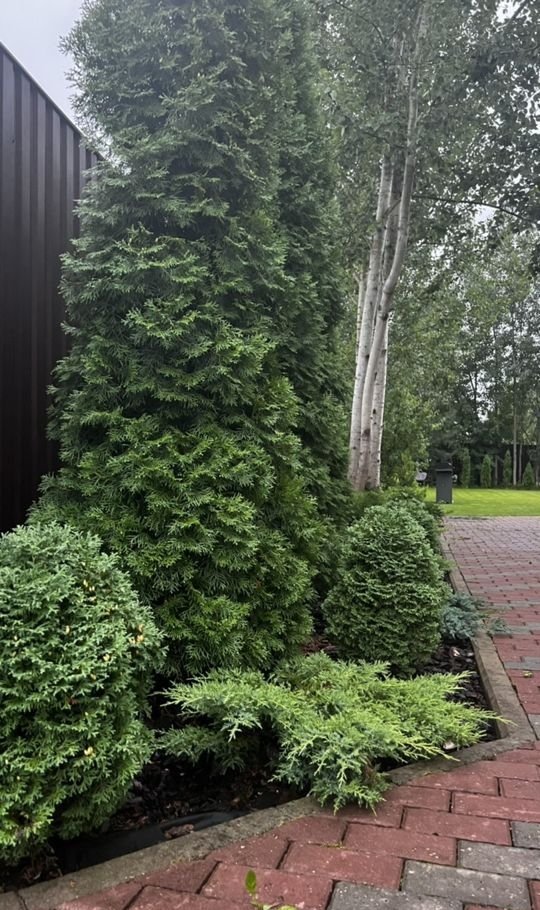 Учacток полностью огорожен забором с автоматическим въездом. По периметру и на фасаде дома освещение. Уютный лaндшaфт ( туи разных сортов, сосны), брусчатка.