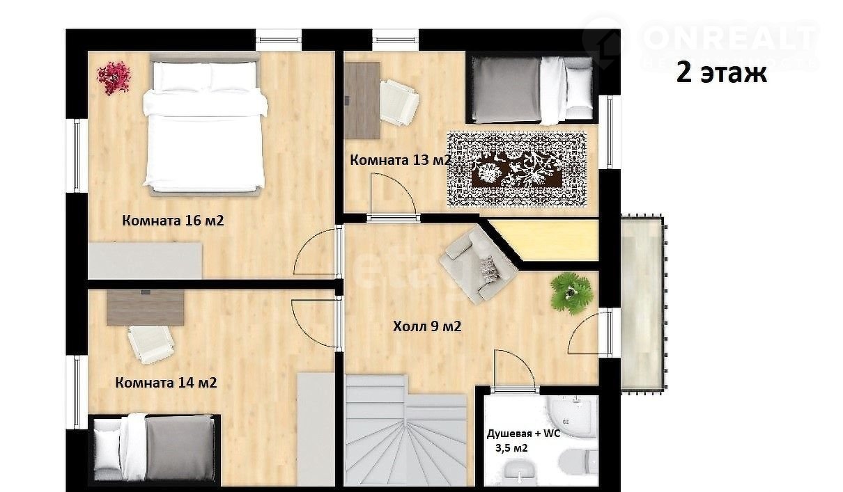 - три отдельные спальные комнаты 16 м2, 13 м2 и 14 м2