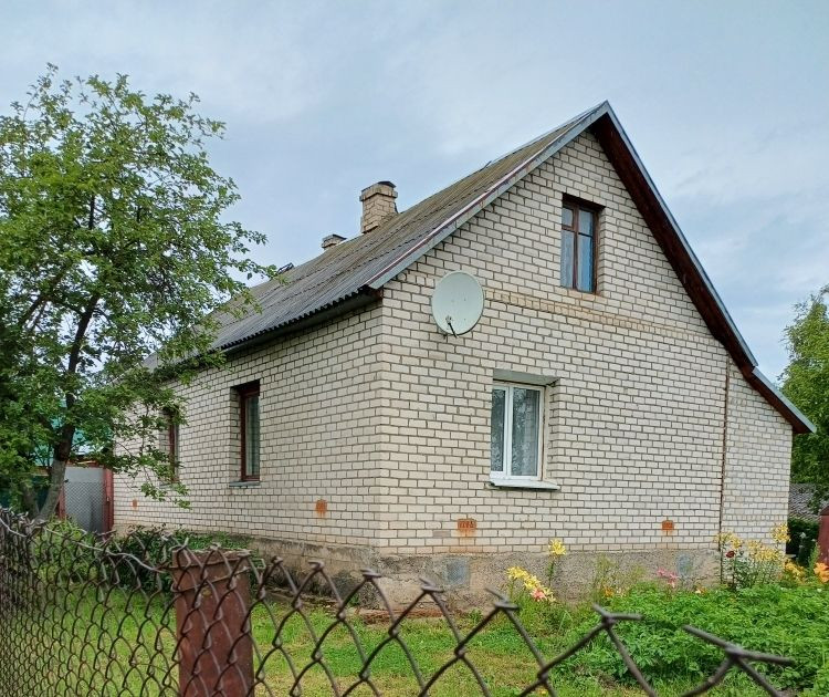Продается дом, бревенчатый обложен кирпичом,    S=80 м.кв, три комнаты (30+10+7) м.в, кухня 10 м.кв,  прихожая, тамбур, отопление -газовый котел (чугунные батареи),  водопровод центральный, баня-сауна в доме,  на участке 10 сот имеется  гараж, сарай, теплица, участок разработан, яблони, ягодник, огорожен сеткой рабицей, автобусная остановка 300 м, городская прописка, один взрослый собственник, без долгов, арестов и обременений, любые формы расчета.
