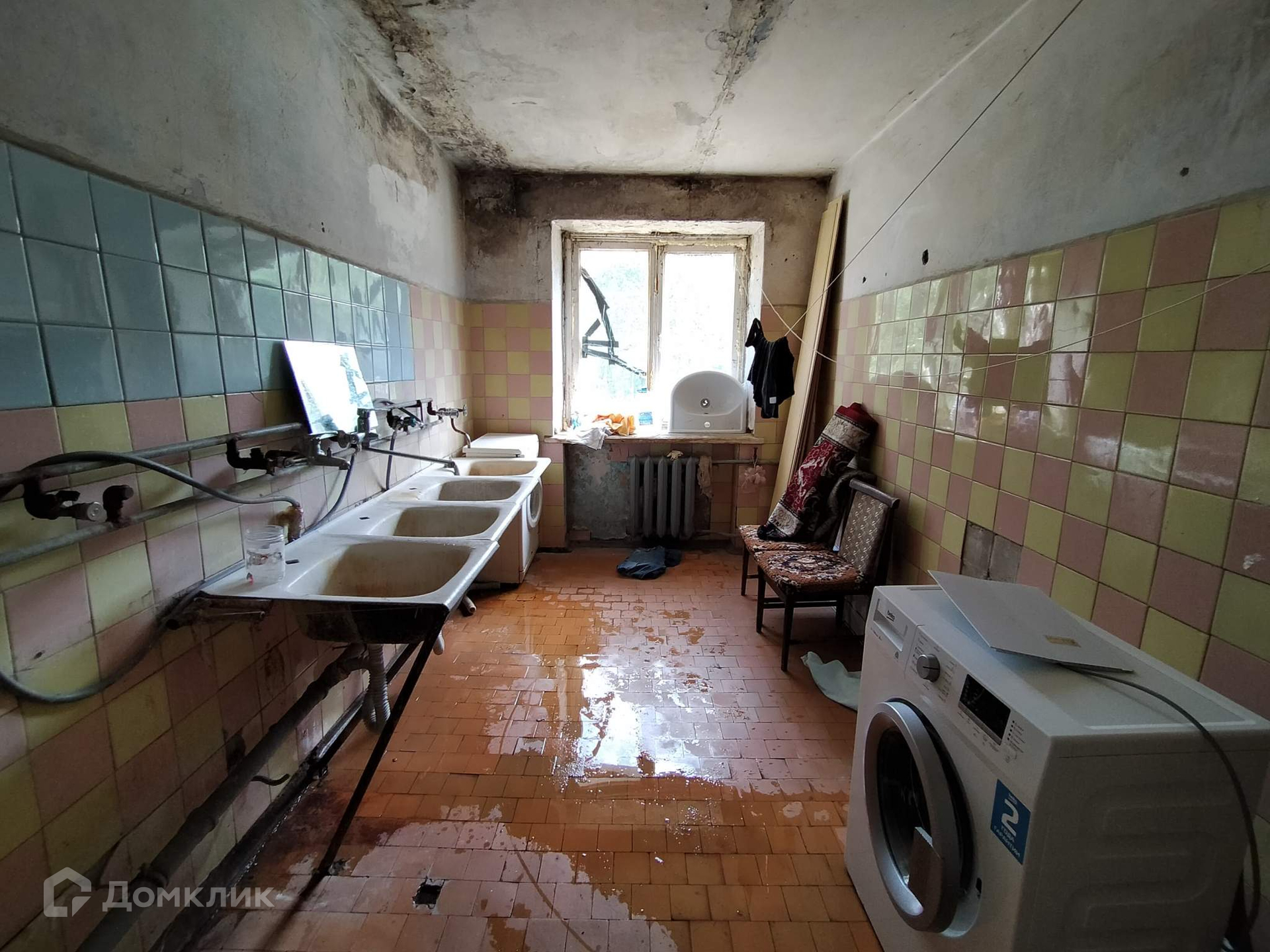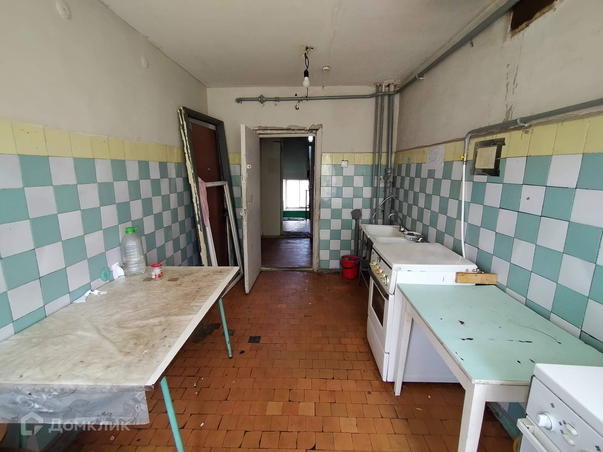 Напротив комнаты общая кухня. На этаже общий туалет и туалет под ключ для владельцев трёх комнат, в том числе и этой. В туалете чистота и порядок.