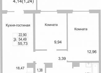 Двухкомнатная квартира на продажу, 56.2 м2, улица Юности, 20