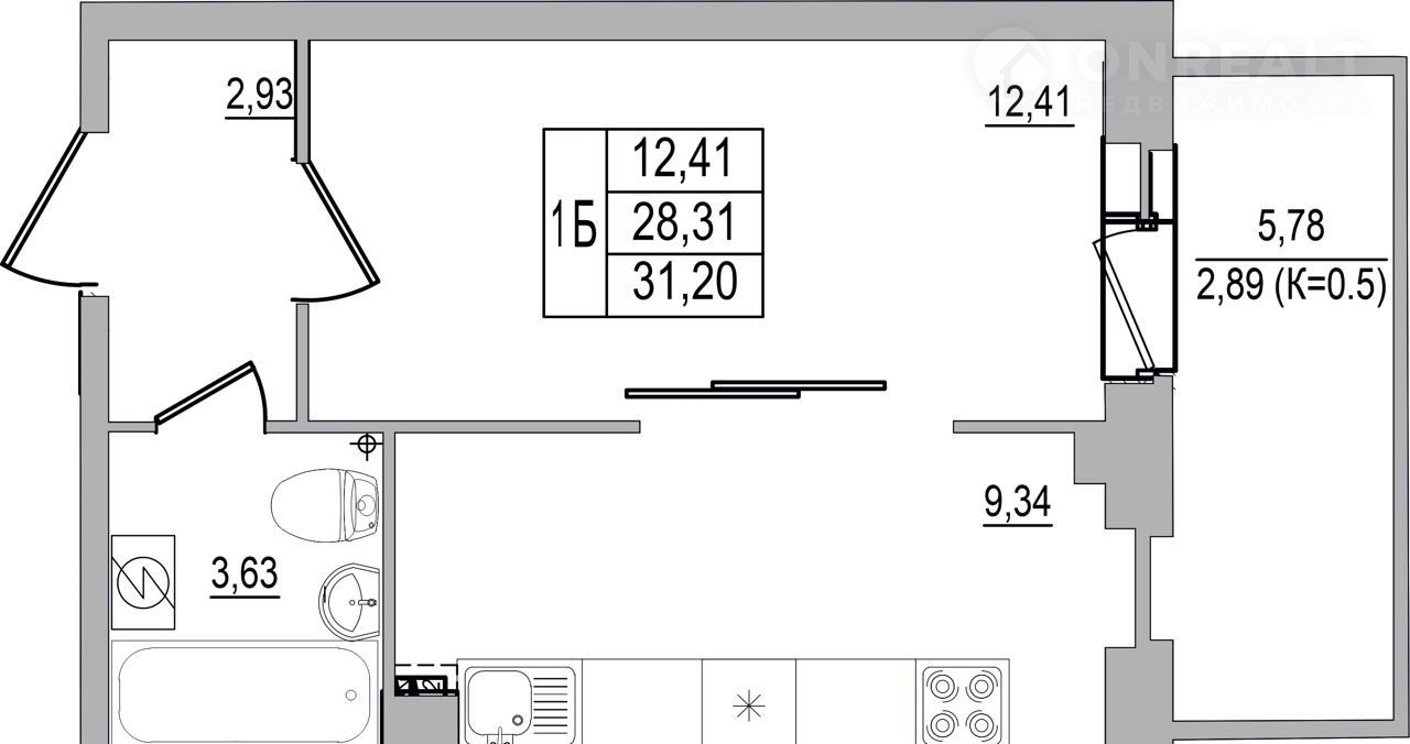 Общая площадь 31.2 м2