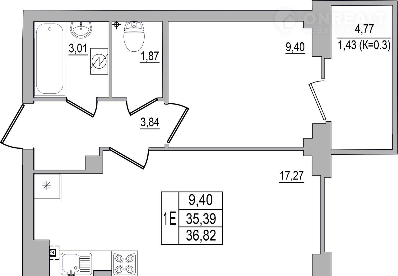 Общая площадь 36.8 м2