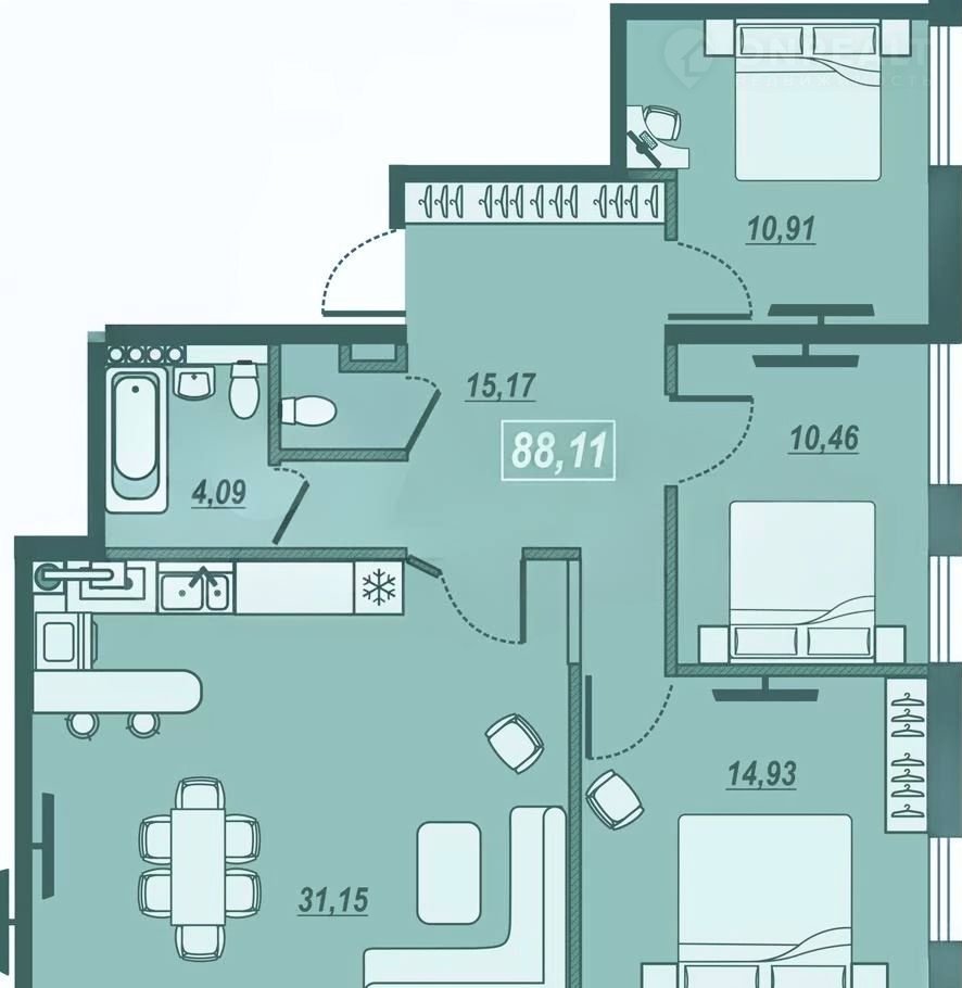 Общая площадь 88 м2