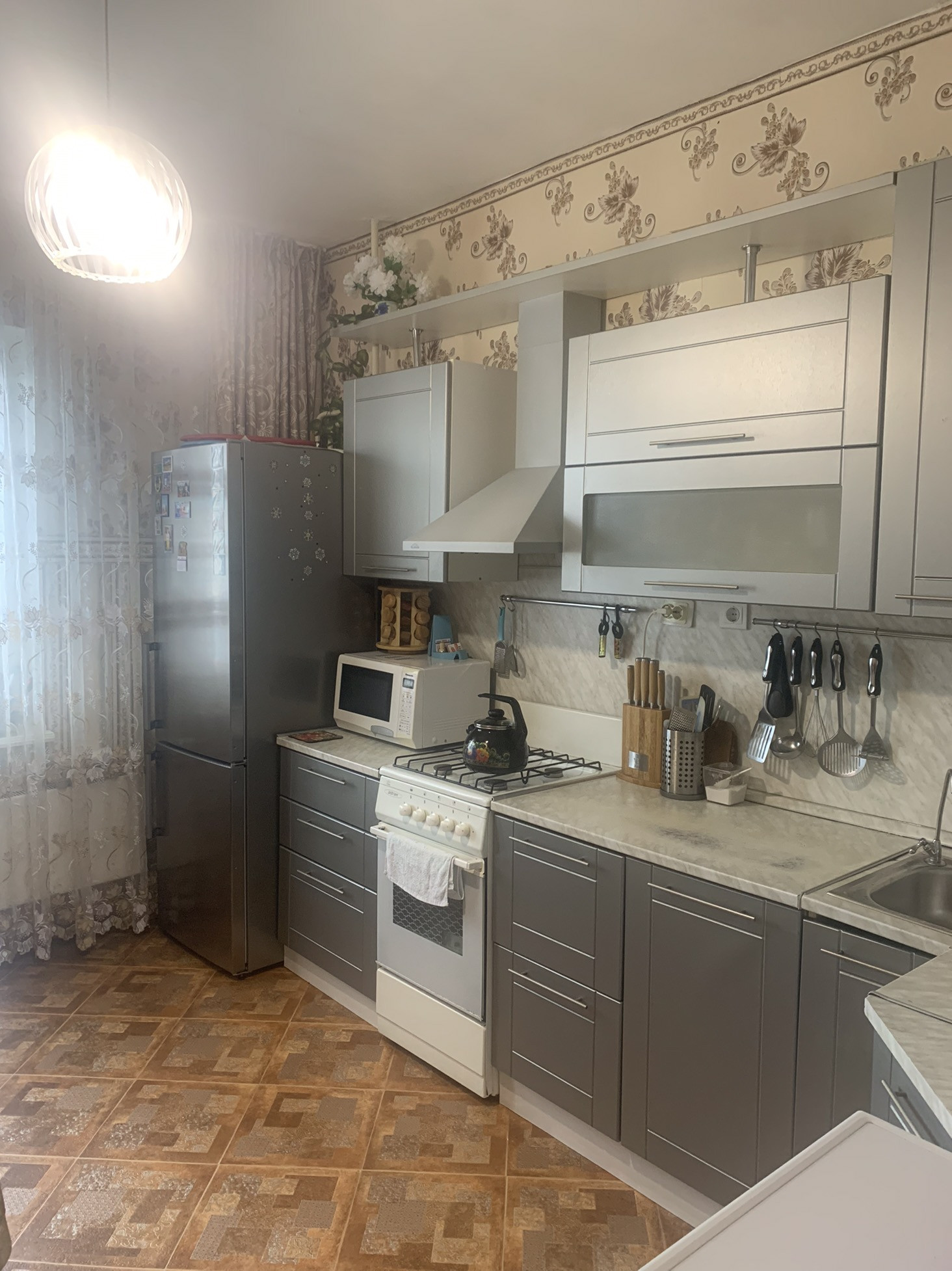 В квартире сделан ремонт,все чисто и аккуратно.Комнаты раздельные,что отлично подойдёт большой семье.Большая кухня с выходом на балкон.Огромный коридор даже позволит кататься детям на детских велосипедах.Санузел раздельный,установлен новый бойлер на случай,когда ежегодно идёт плановое отключение горячей воды по всему городу ,но зато у Вас она будет всегда!