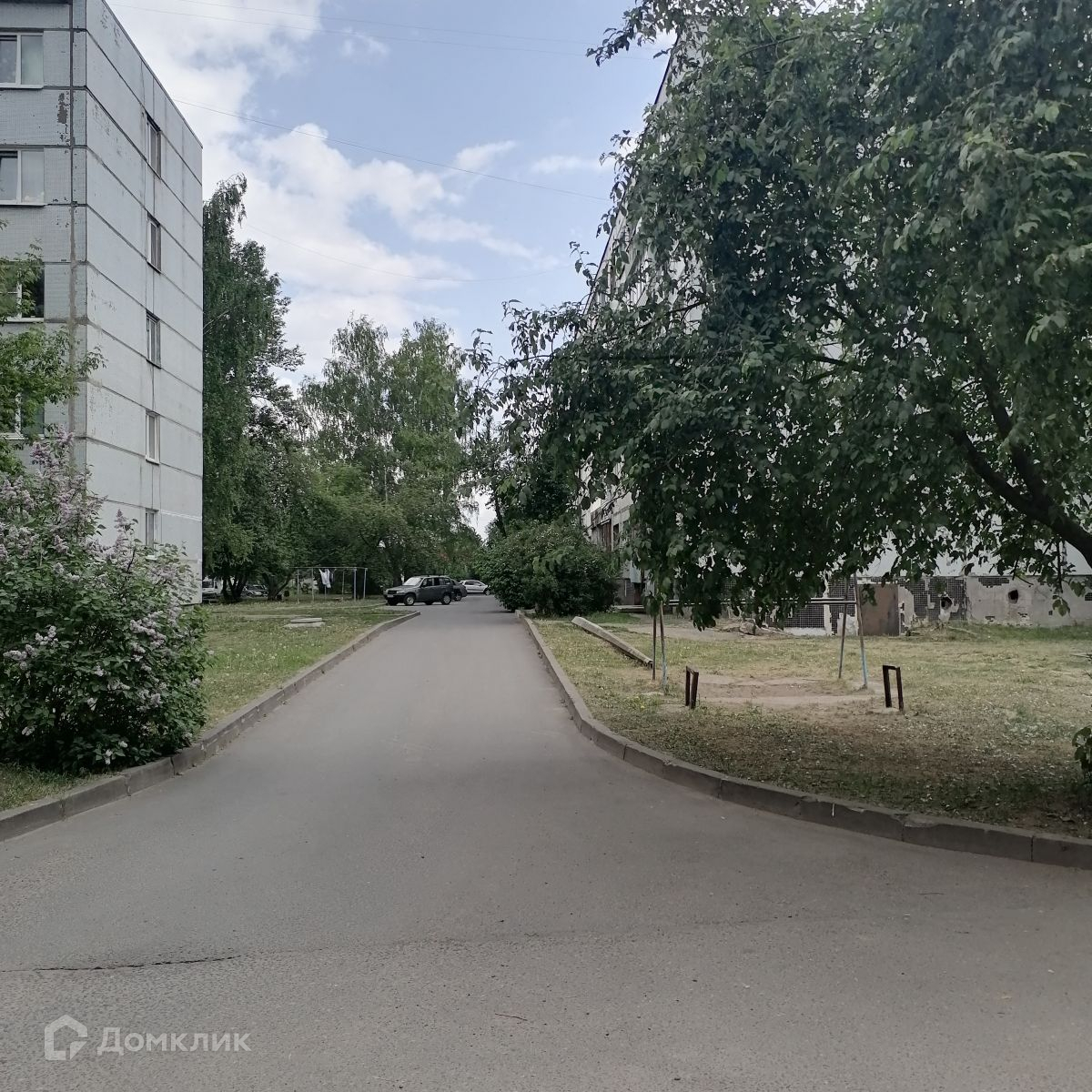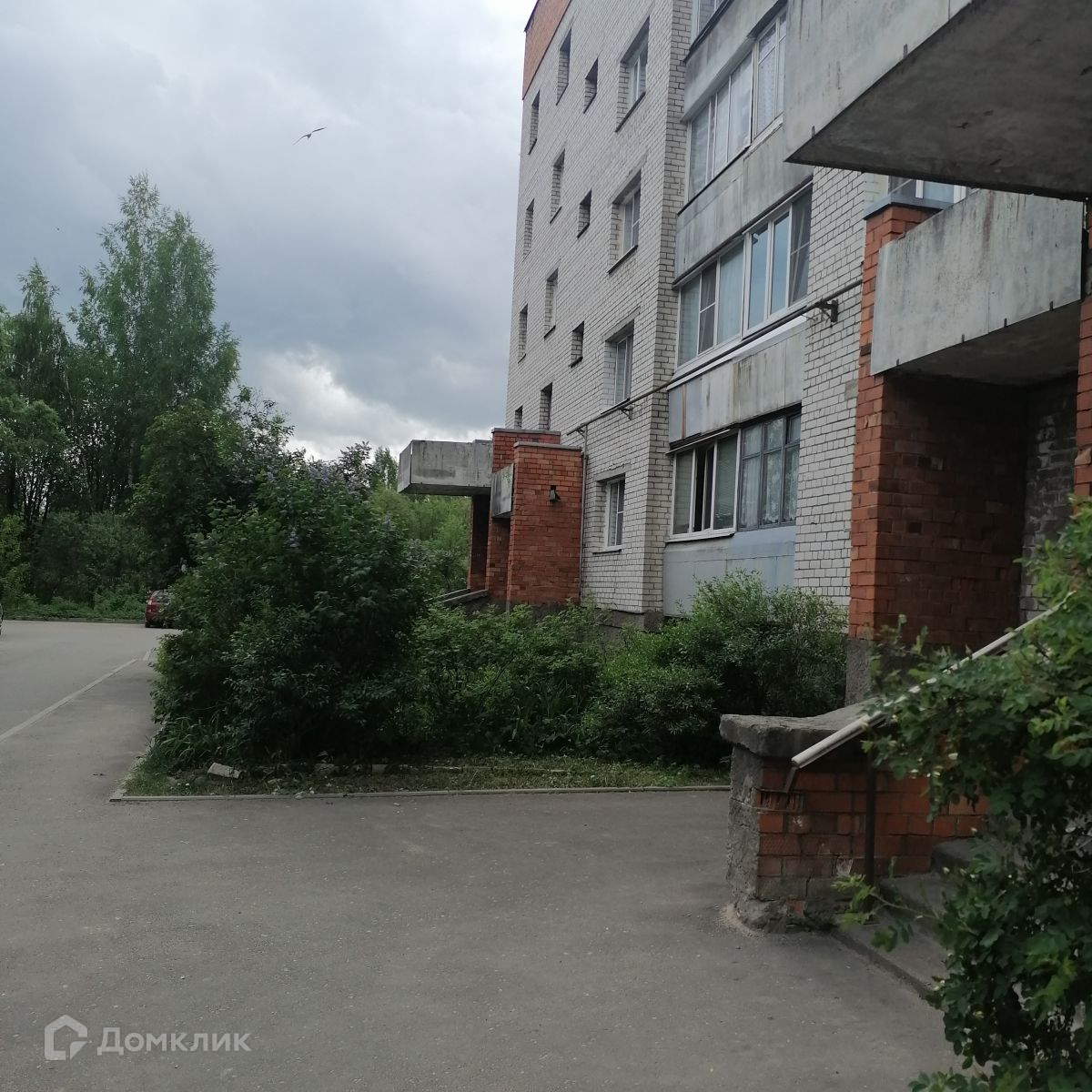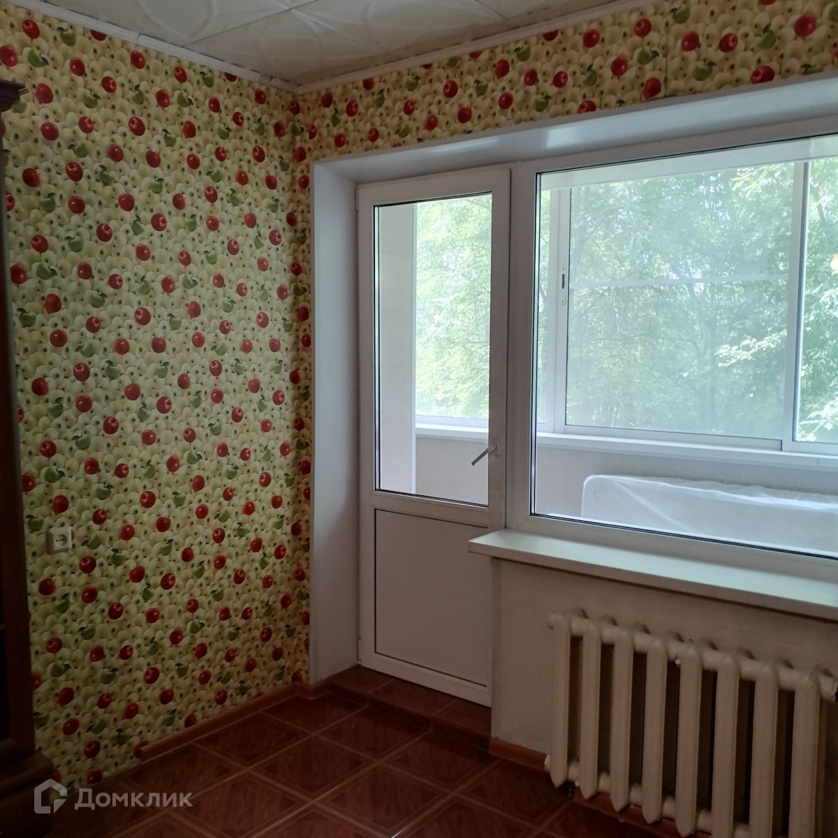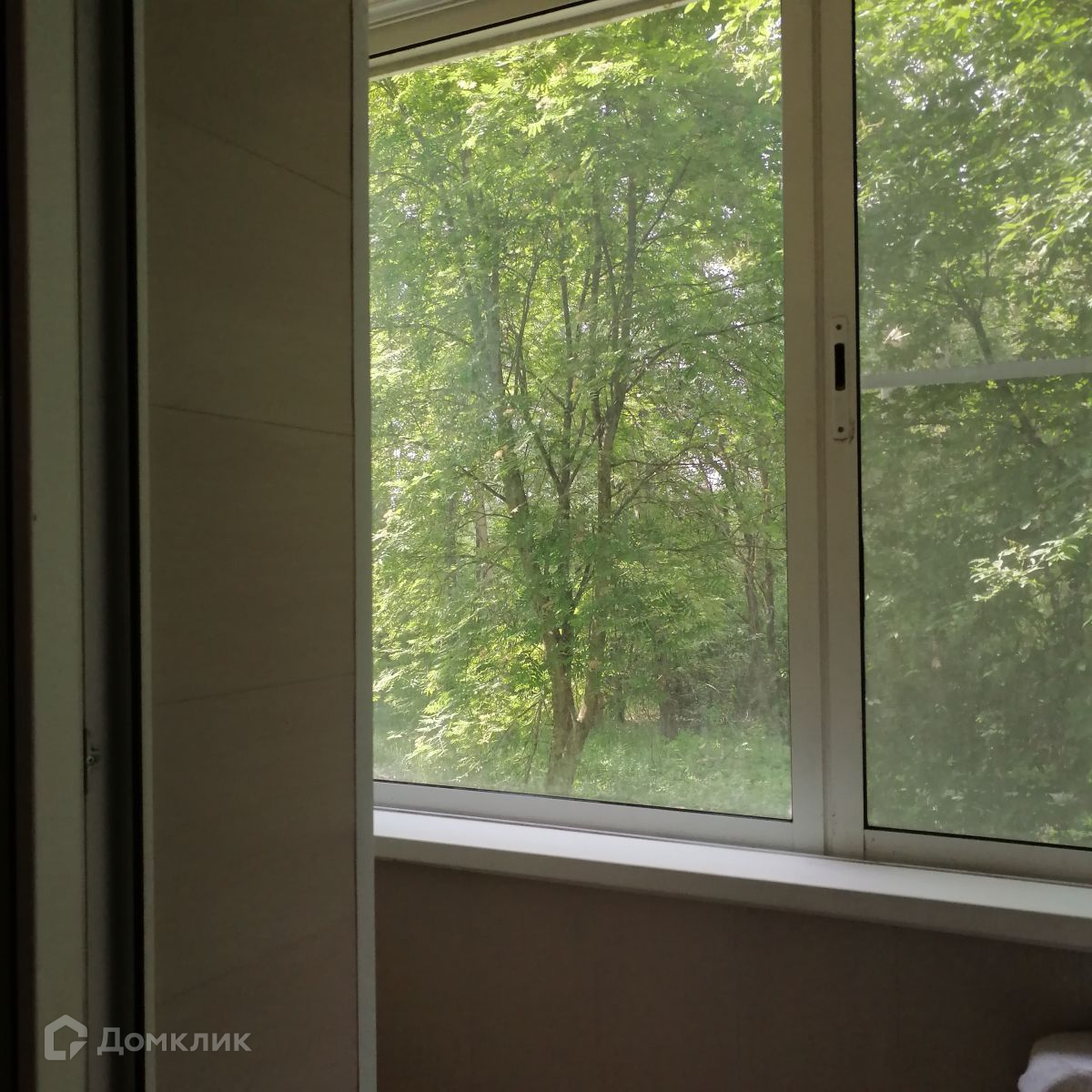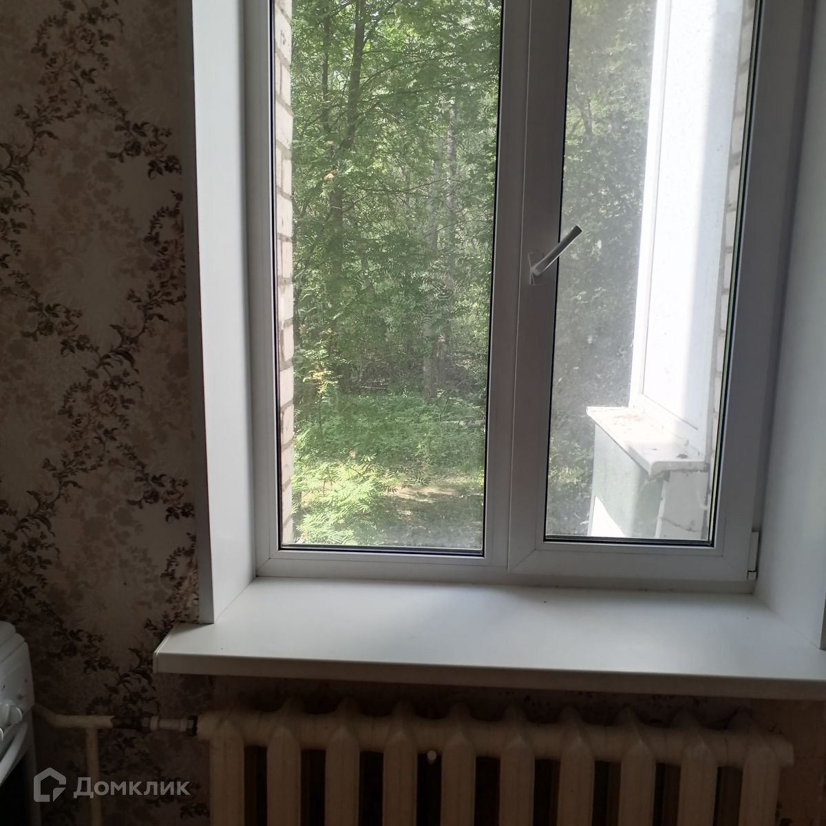 Окна выходят на зеленую зону.