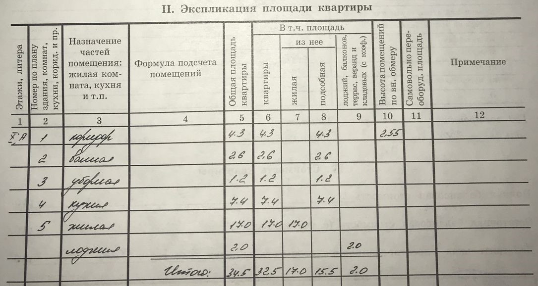 Общая площадь 34.5 м2