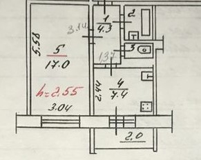 Высота потолков 2.55 м