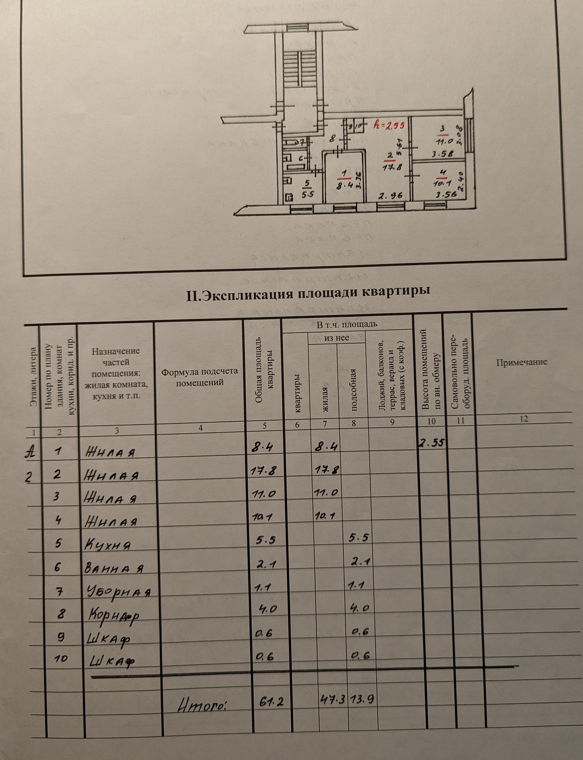 Высота потолков 2.54 м