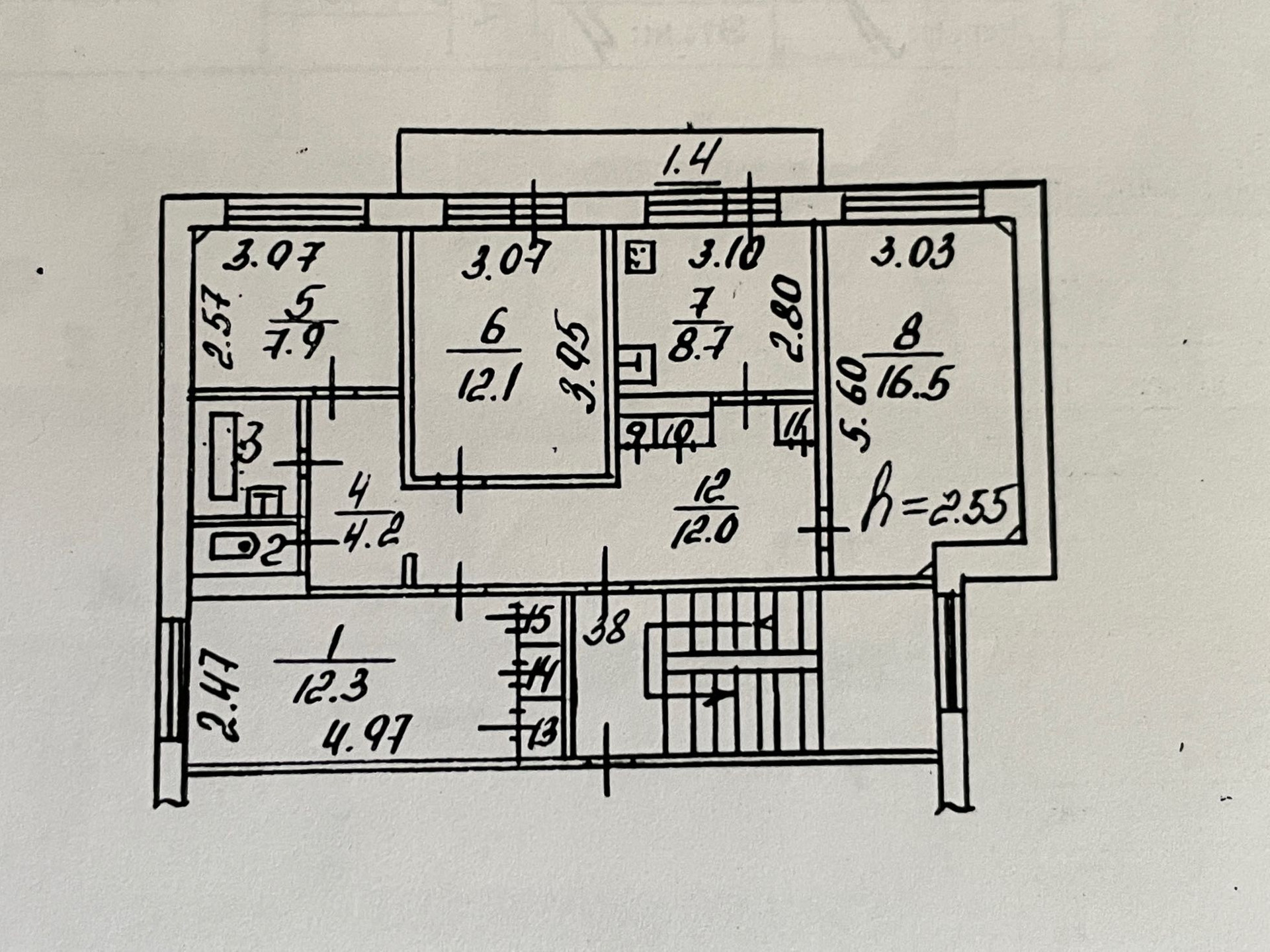 Высота потолков 2.55 м