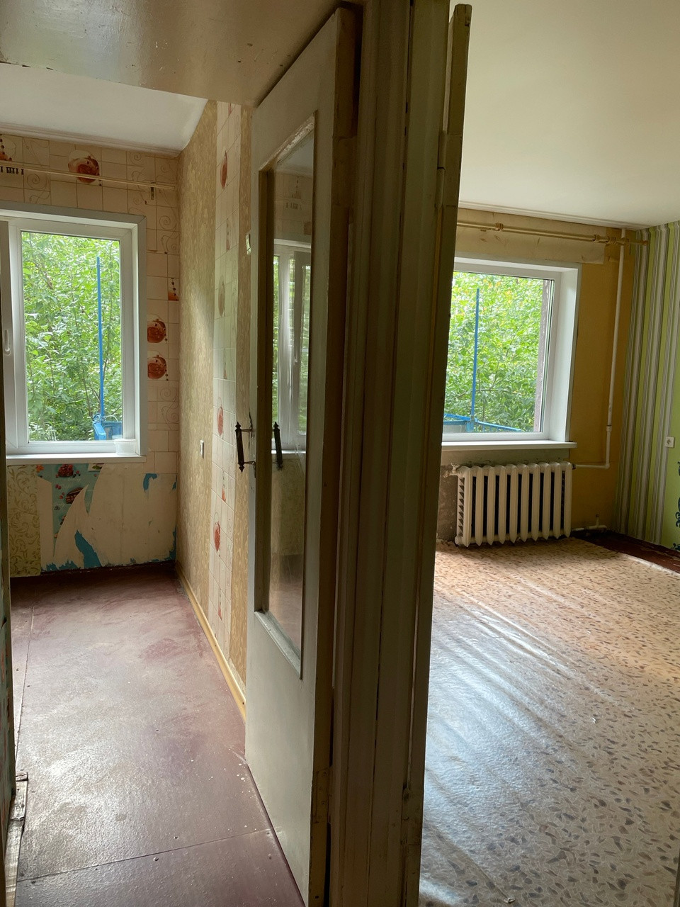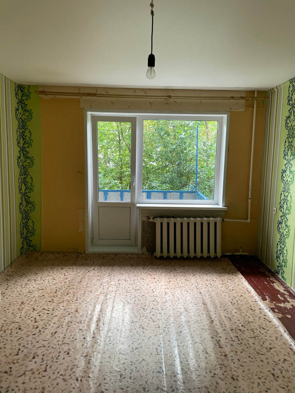 ЦГВ, с/узел совмещенный. Натяжной потолок в комнате, стеклопакеты