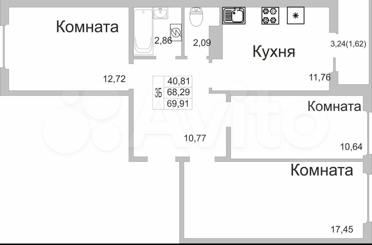 Общая площадь 69.5 м2