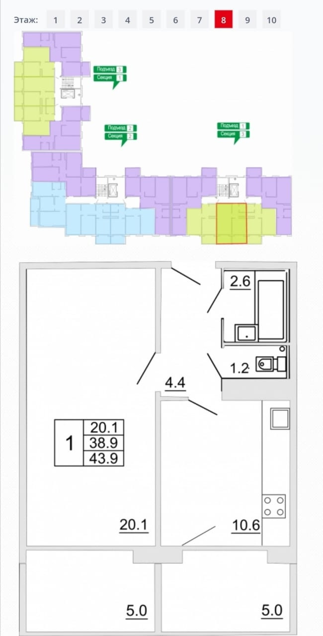 Этаж / Этажность 8 / 10