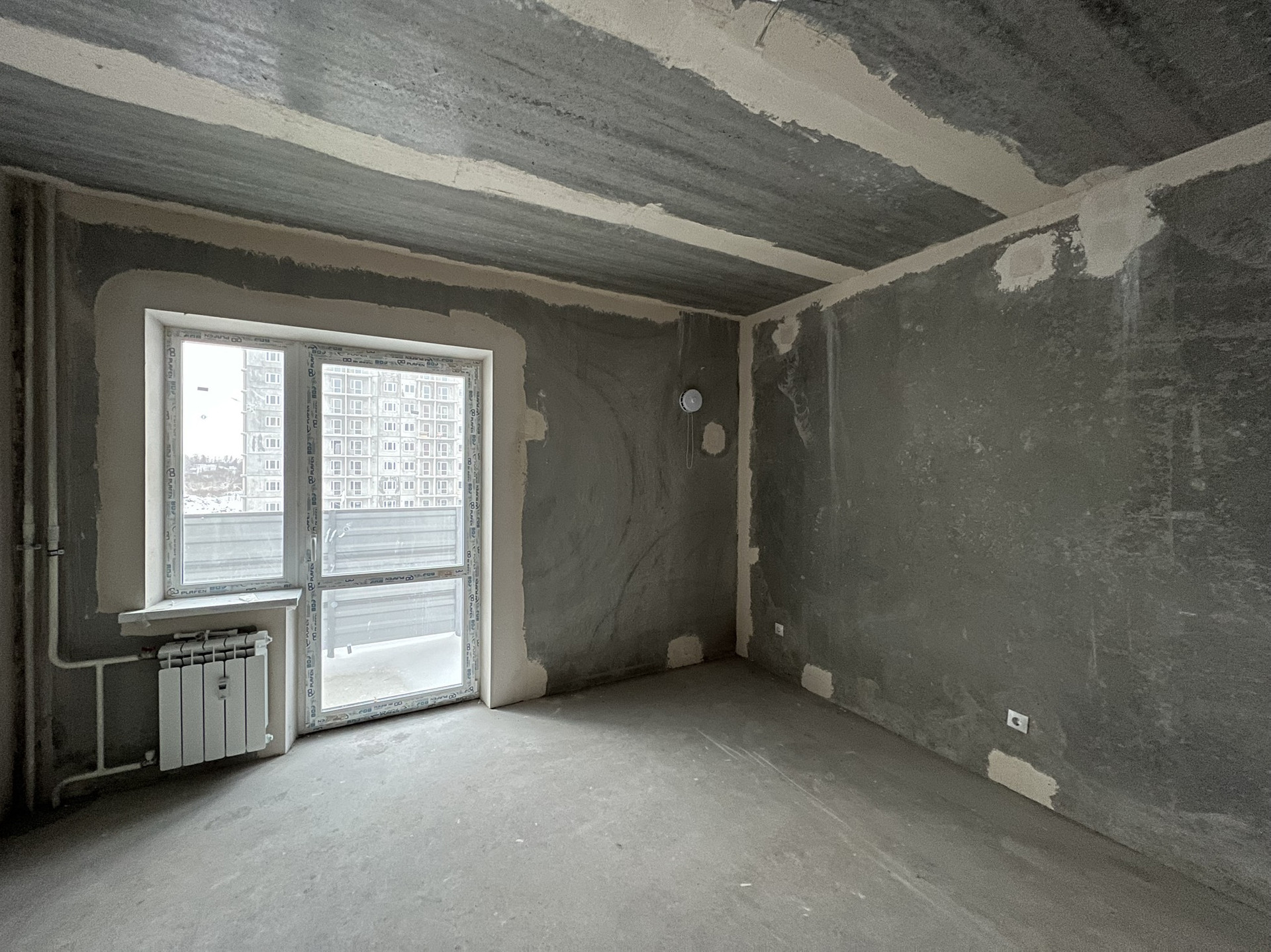 Квартира подготовлена к ремонту, сделана стяжка Пола, разводка эл-ва, выведены розетки и выключатели, установлены счетчики на воду, дом не газифицирован, коммунальные услуги считаются по сниженному коэффициенту.