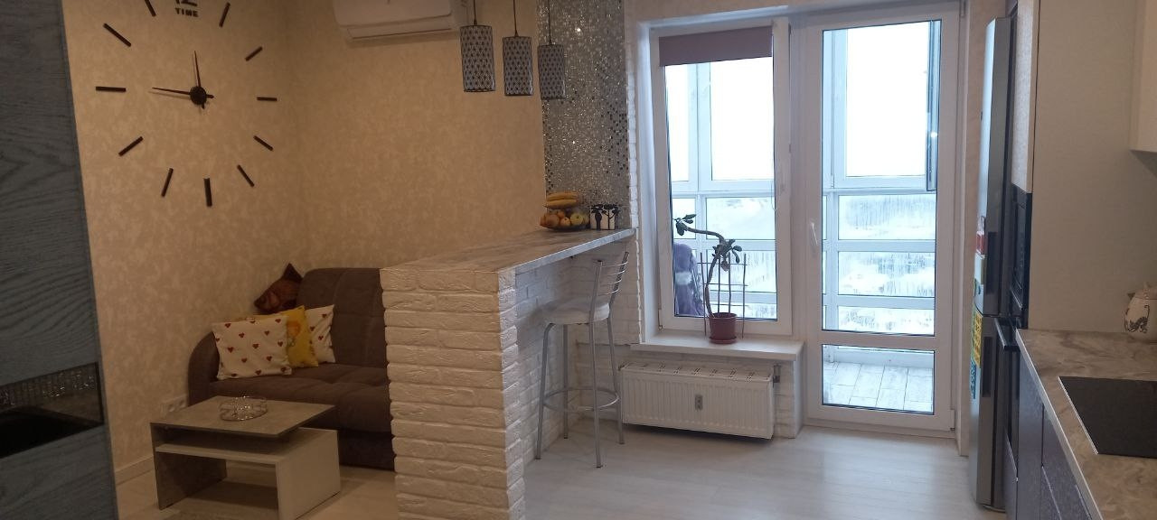Продаётся квартира с отличным, качественным ремонтом, все делали для себя, на материалах и технике не экономили. Остаётся встроенная мебель и техника. Аккуратная прихожая с встроенными шкафами, удобный и функциональный санузел, кухня-гостиная разделена барной стойкой на зону готовки и зону отдыха, уютные спальни в спокойных тонах, панорамное остекление балкона с отличным видом в любое время суток и года.