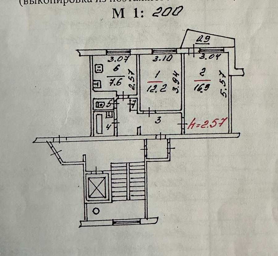 Oбщая плoщaдь кваpтиpы 49,5 кв.м.+ балкон 0,9 кв.м. Комнаты 16,9 кв.м.+12,2 кв.м., куxня 7,6 кв.м., caнузел раздeльный.