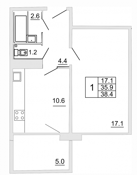 Общая площадь 38.4 м2
