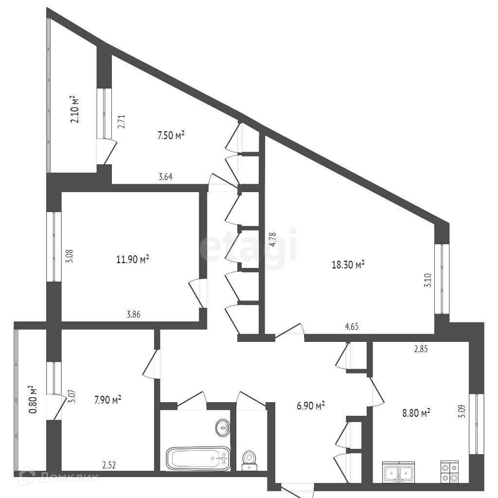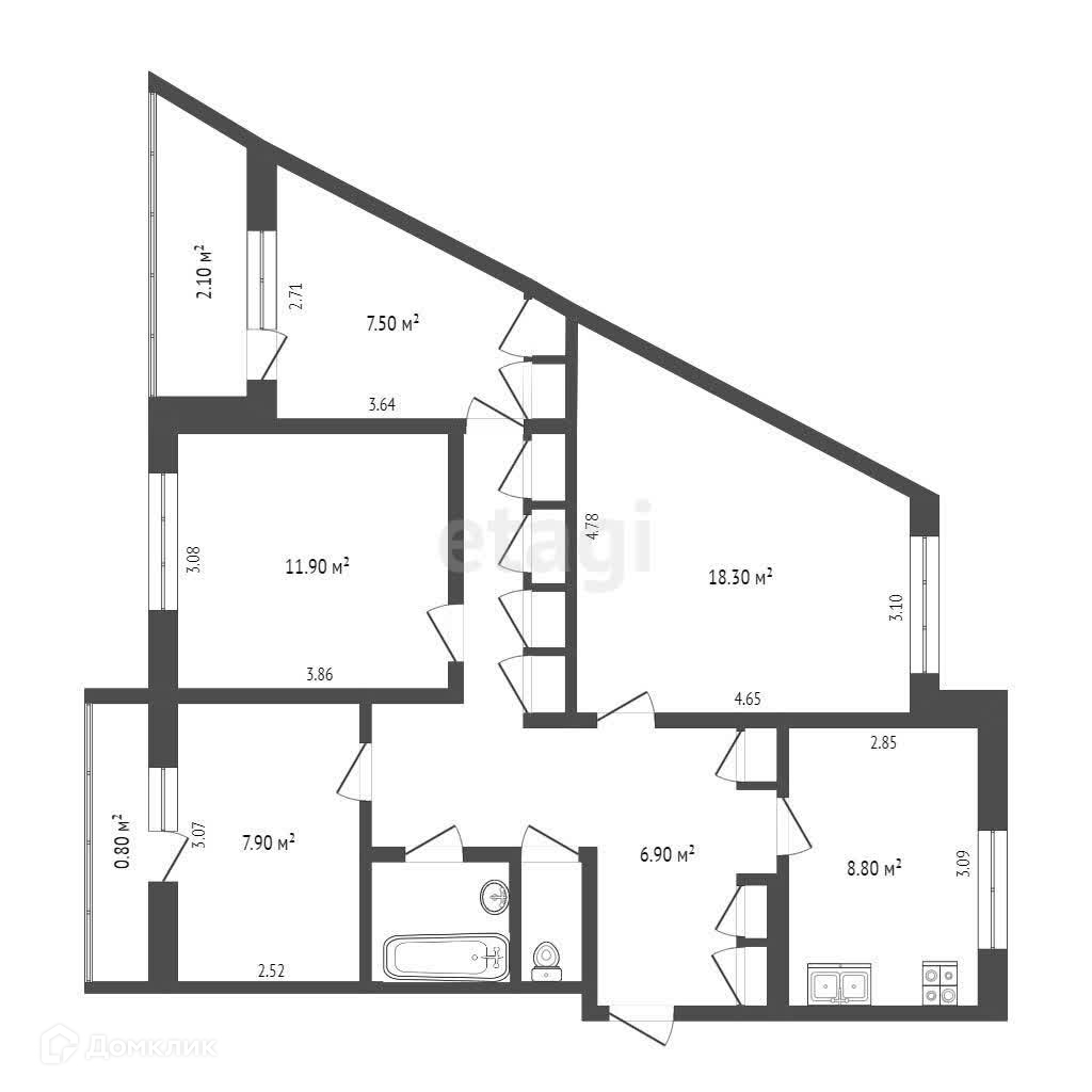 Отличная планировка квартиры: просторная кухня(8,8 кв.м), комнаты (11,9 18,3 7,5 7,9), раздельный санузел, два застекленных балкона, просторный коридор.
