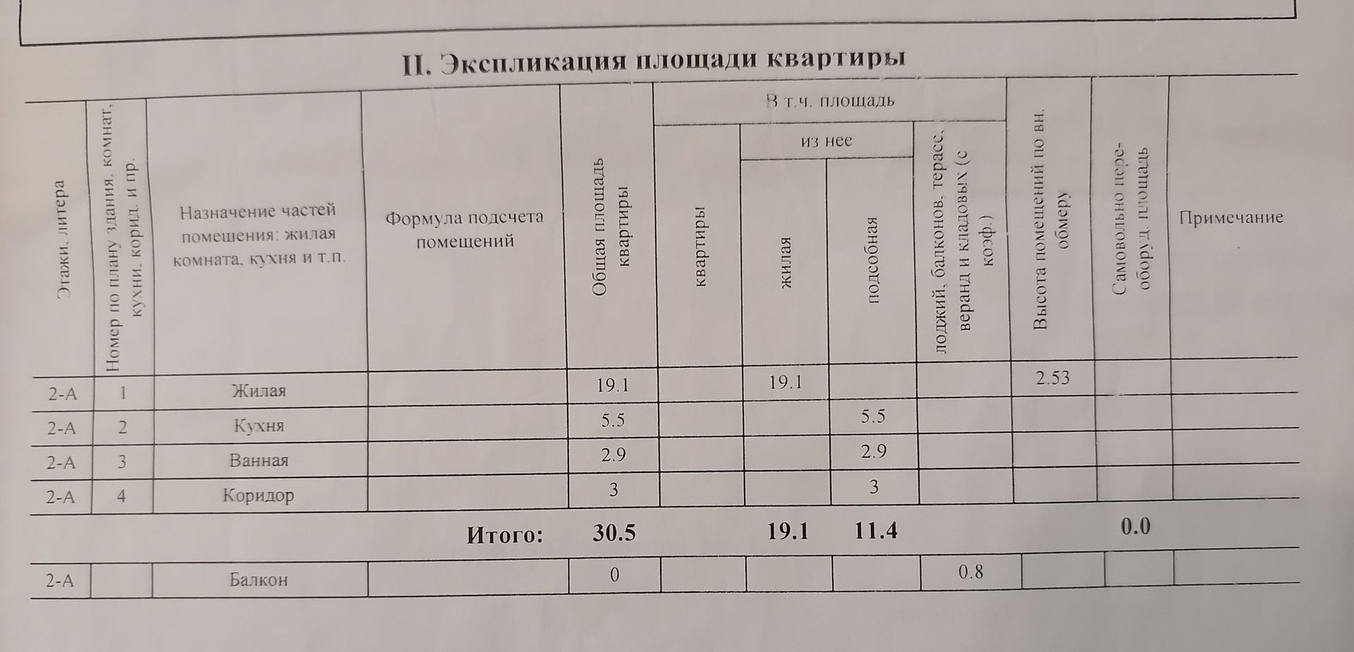 Общая площадь 30.5 м2