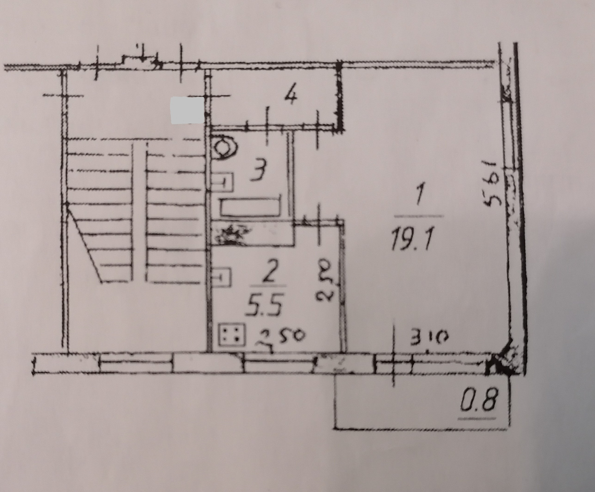 Жилая площадь 19.1 м2