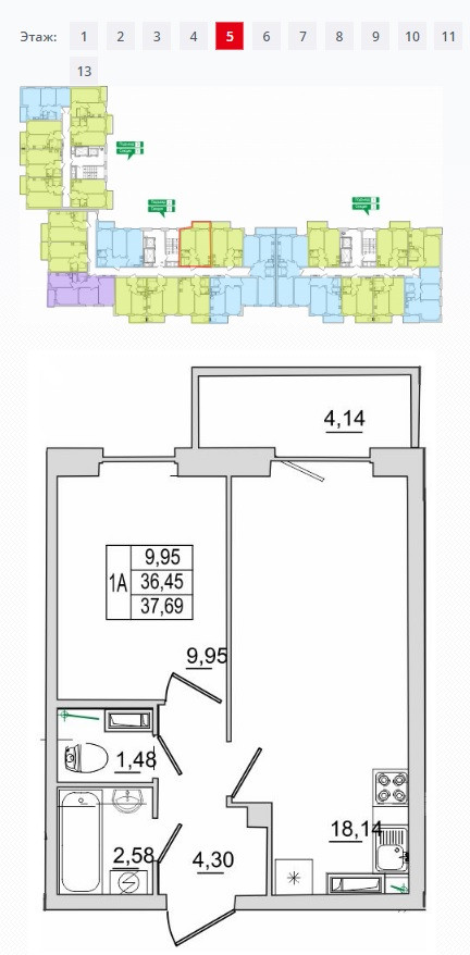 Этаж / Этажность 5 / 13