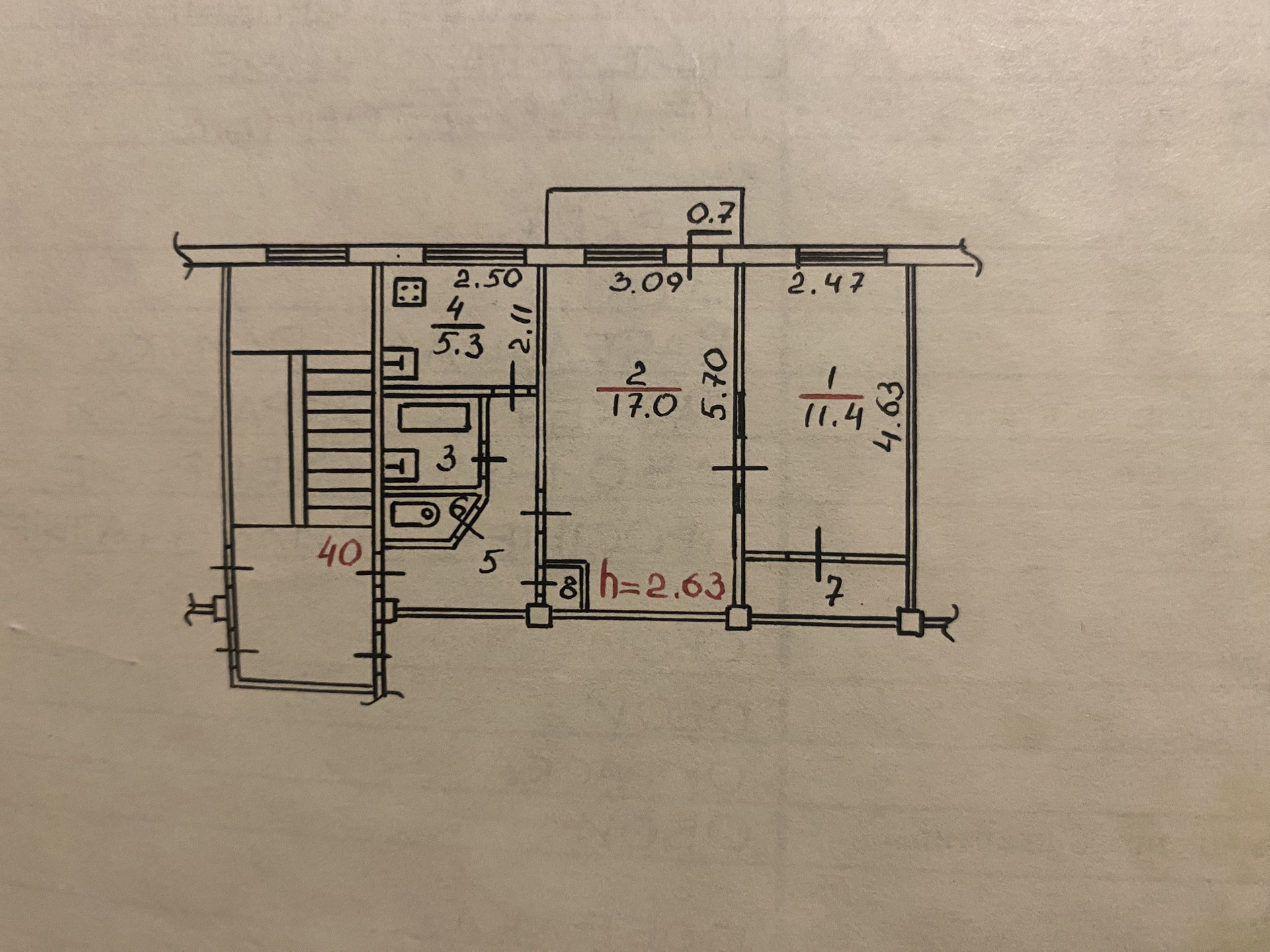 Площадь кухни 5.3 м2