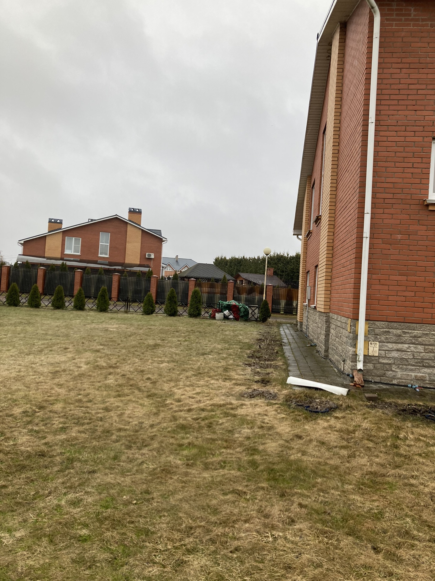 Участок ухожен-зелёный газон с вечнозелеными туями!!!