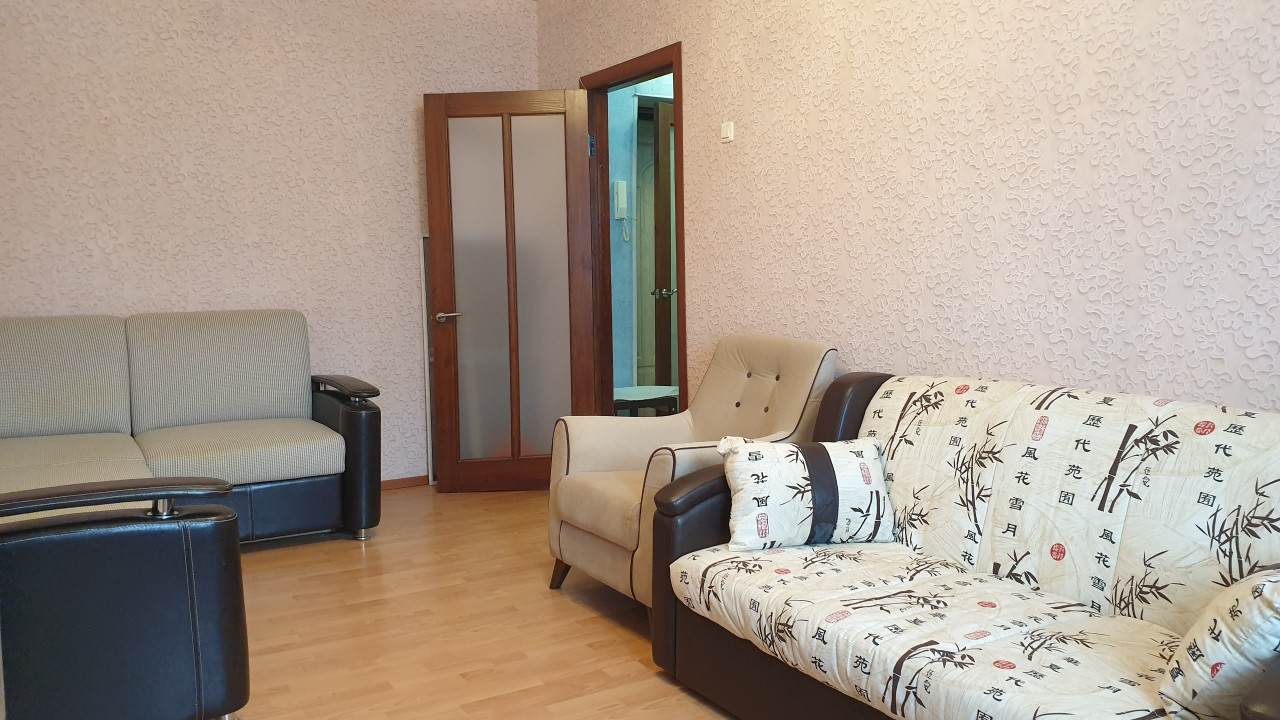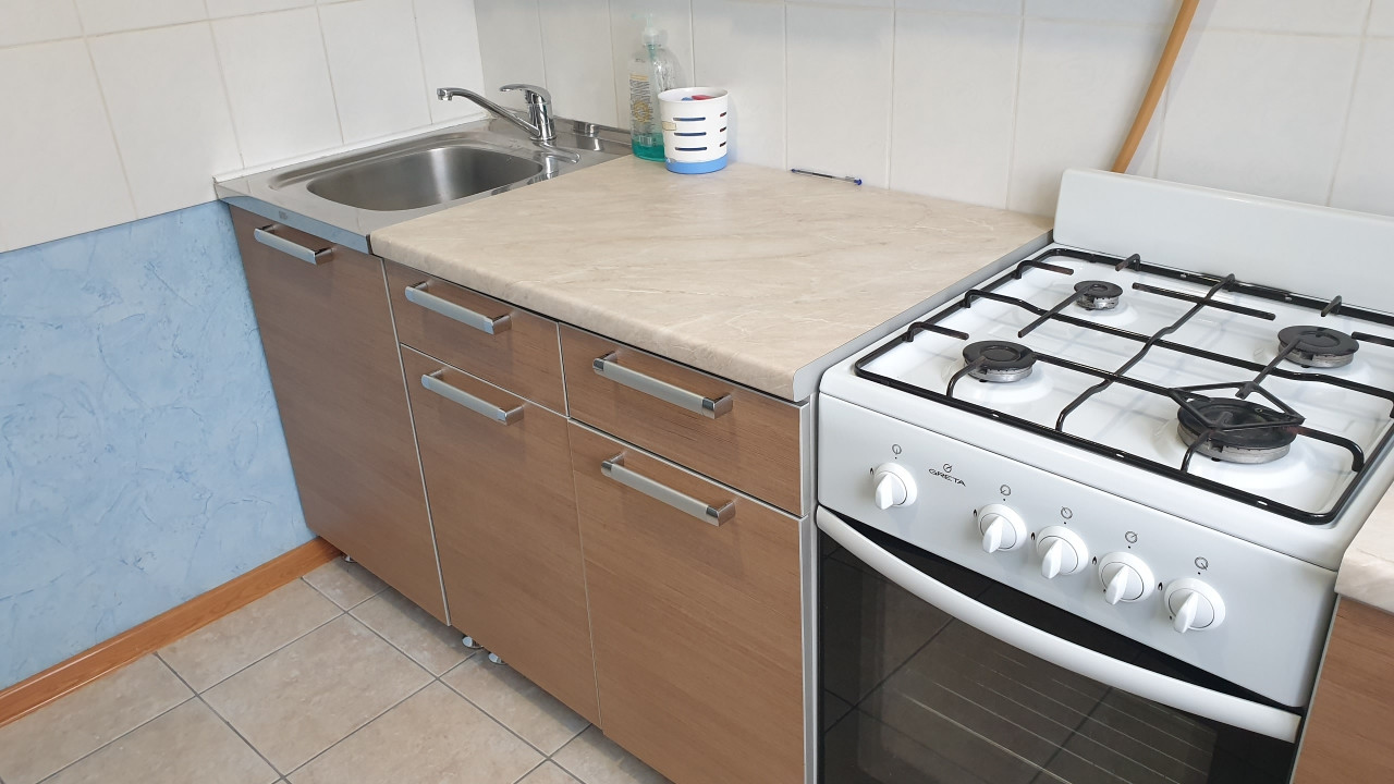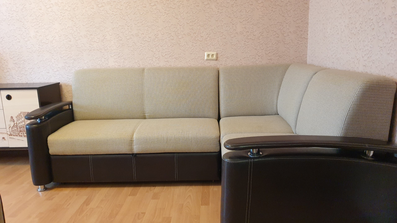 Мебель: два дивана (оба раскладываются), кресло, комод, тумба под ТВ, кухня, стол, стулья и т.п. А также имеется вся необходимая для жизни бытовая техника: совершенно новый холодильник (есть на фото), почти новая стиральная машина.