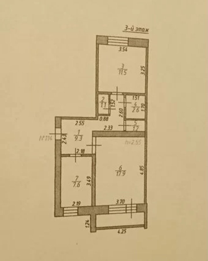 Высота потолков 2.5 м
