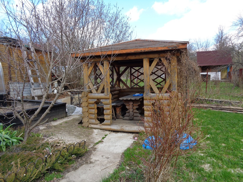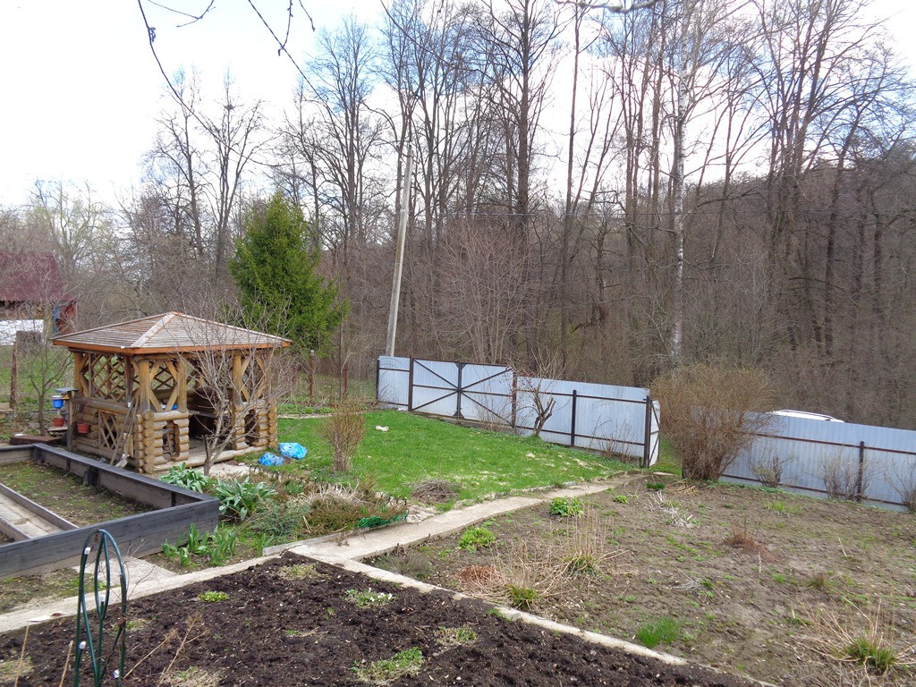 Участок по документам 6 соток, по факту 7,5 соток. Огорожен сеткой рабицей, спереди металлопрофиль. На участке есть беседка и теплица. На участке посажены плодовые деревья и кустарники. С участка прекрасный вид на лес.