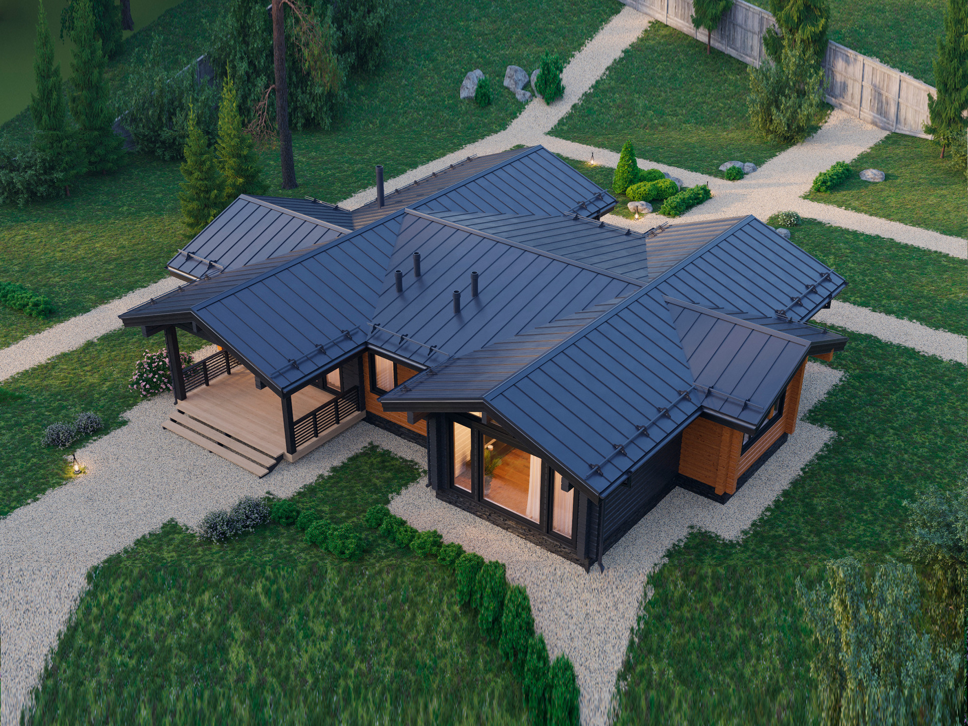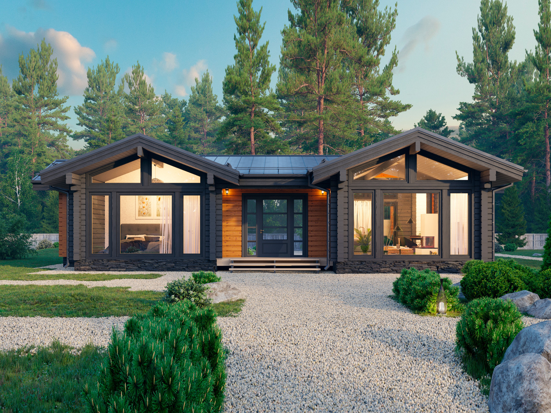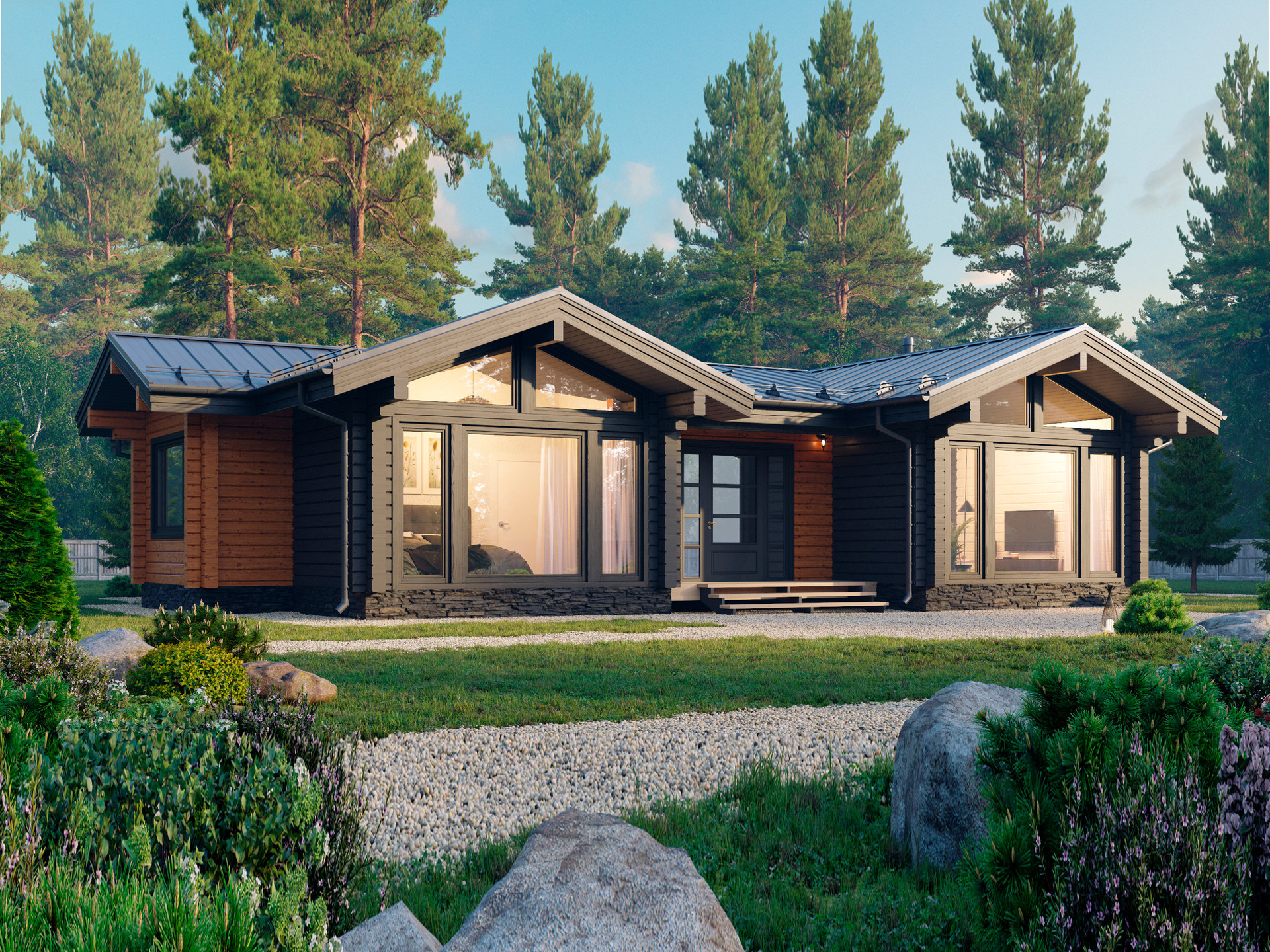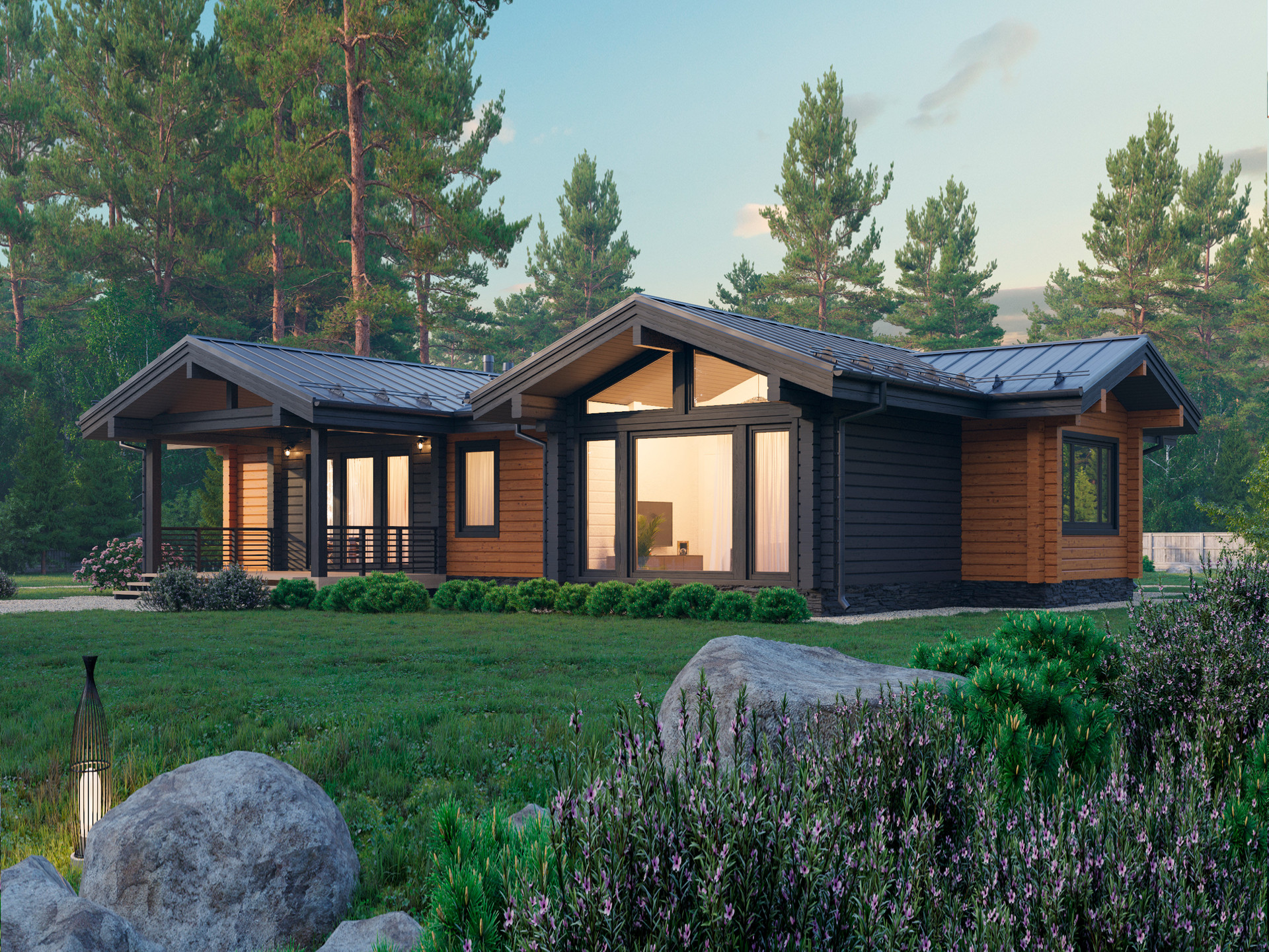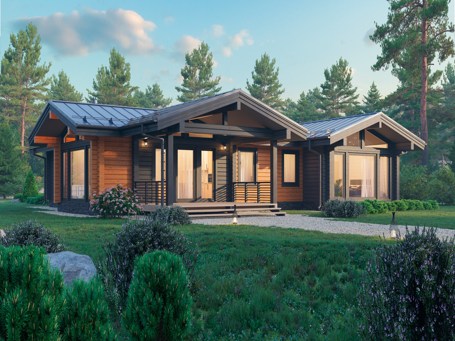 Дом из клееного бруса по проекту "ИДЕЛЬ" от компании ТРИЛОГИЯ