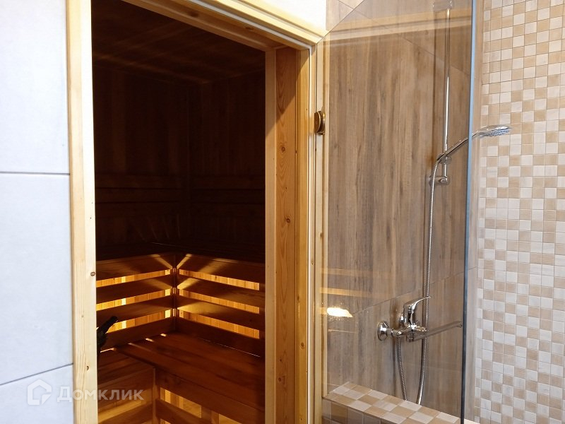 Гостевой дом - баня, площадью 25 м2, выполнен в едином стиле с жилым домом, включая авторское освещение. Кроме банного комплекса, в доме есть комната отдыха и санузел с душем. В гостевом доме - бане полностью выполнена чистовая отделка по авторскому дизайнерскому проекту. Купель в банном комплексе оформлена мозайкой, установлена электрическая печь с сенсорным управлением (9 кВт). В доме оборудована небольшая кухня.