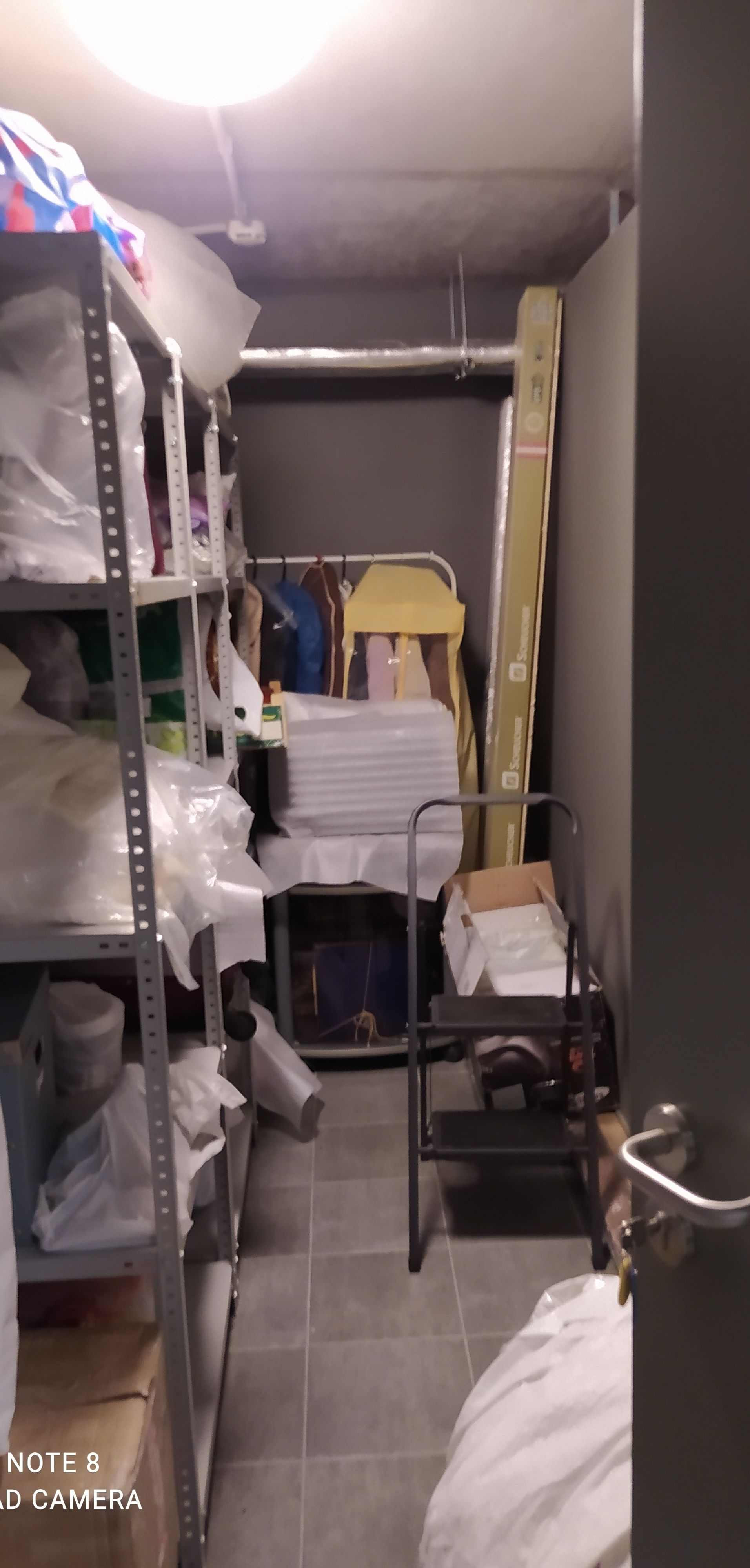 Кладовая с внутренней отделкой и стеллажами.