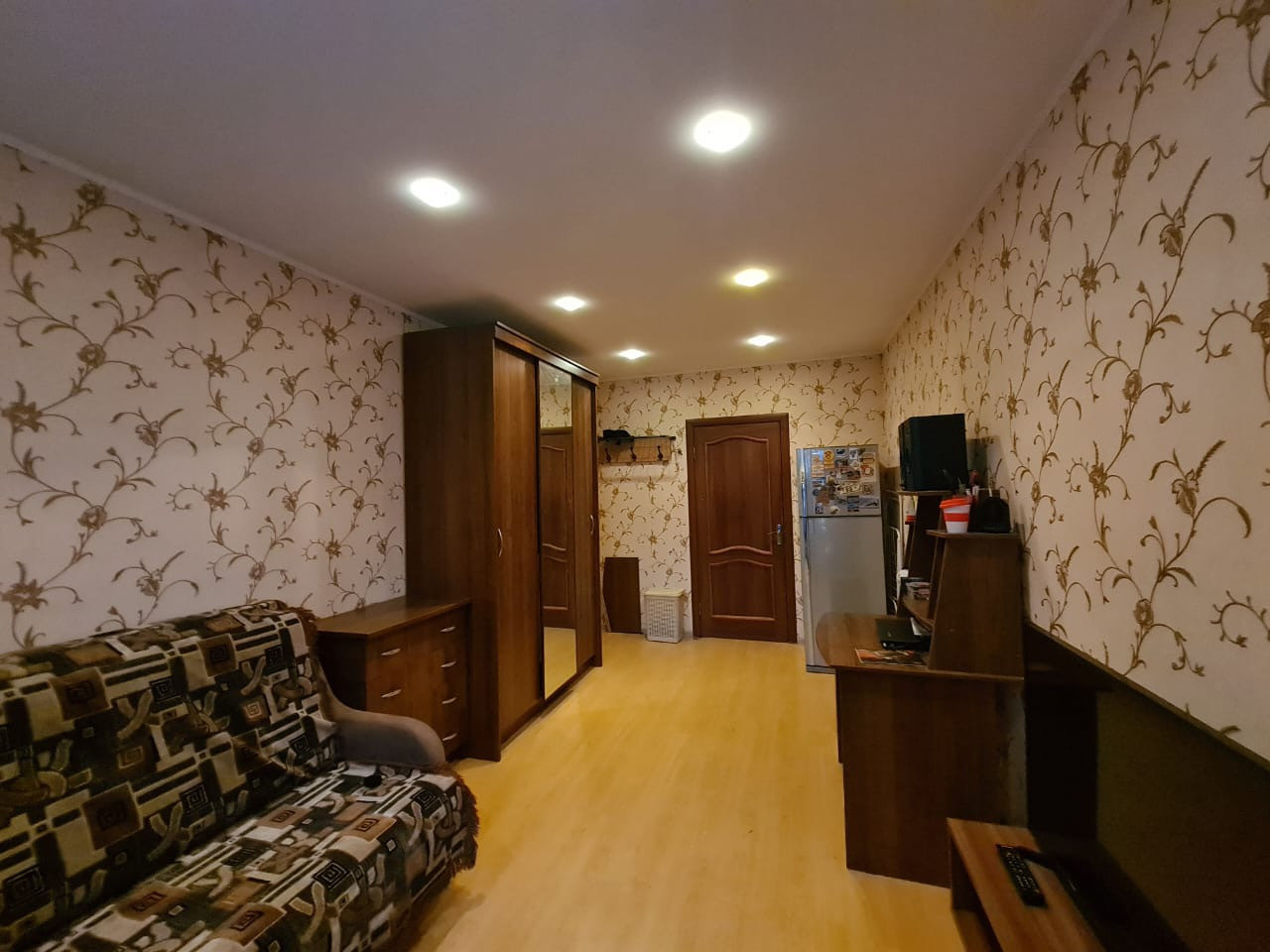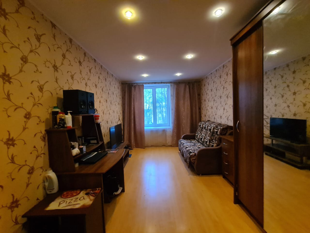 Продается просторная комната 18,0 м.кв. в 3-х комнатной квартире общей площадью 67 кв. м, в центре Пушкина, с видом на храм, в 500 м от Екатерининского дворца. Дом кирпичный 1917 года постройки